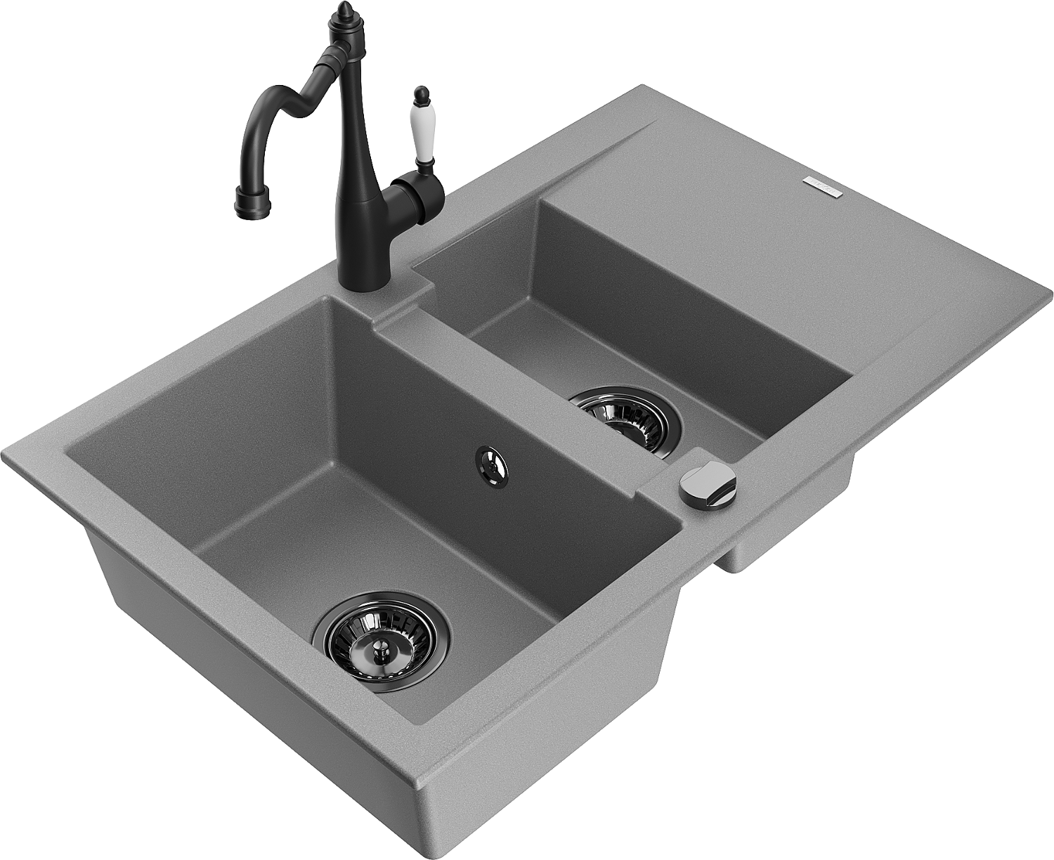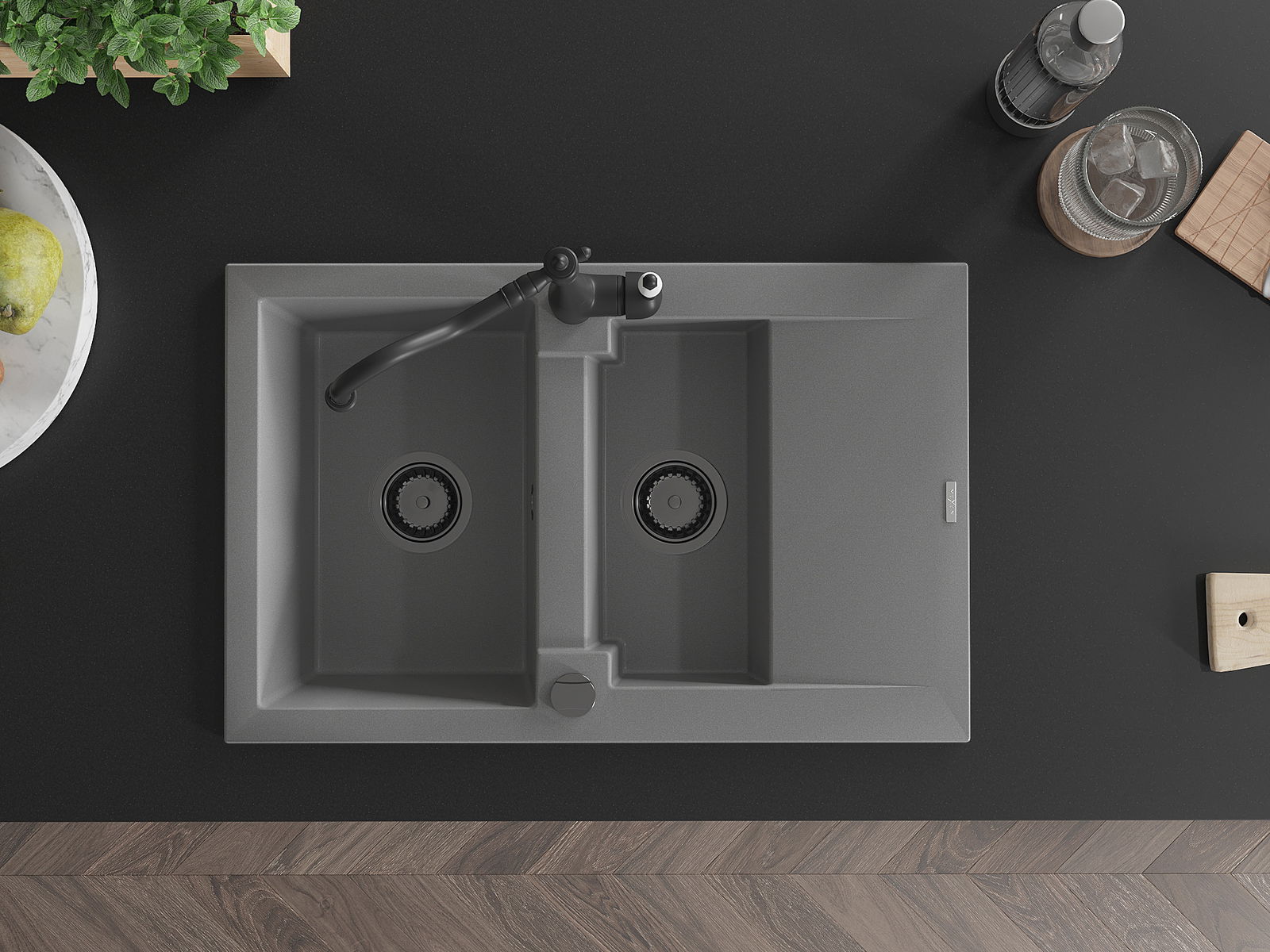 Mexen Gaspar 1,5 nodalījuma granīta izlietne ar noteces virsmu un virtuves jaucējkrānu Carla, pelēka - 6507-71-670700-70-B