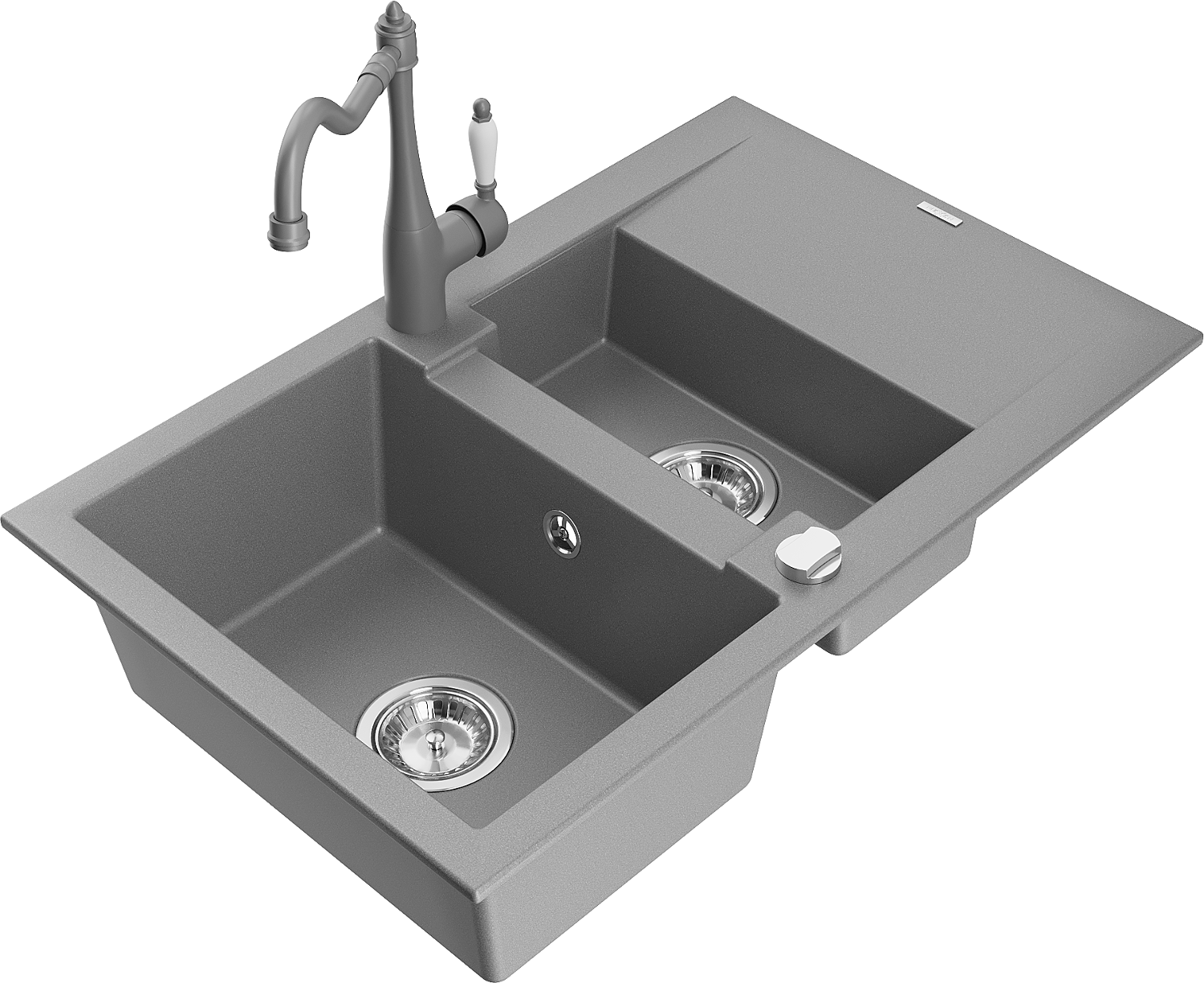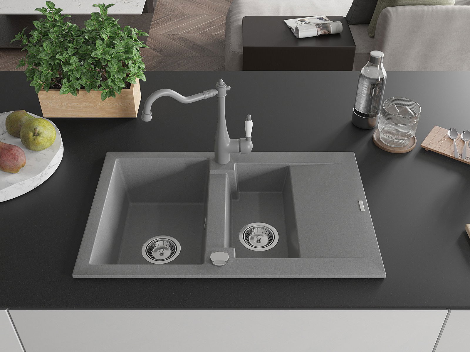 Mexen Gaspar granīta izlietne 1,5 nodalījumu ar noteku un virtuves krānu Carla, pelēka - 6507-71-670700-71
