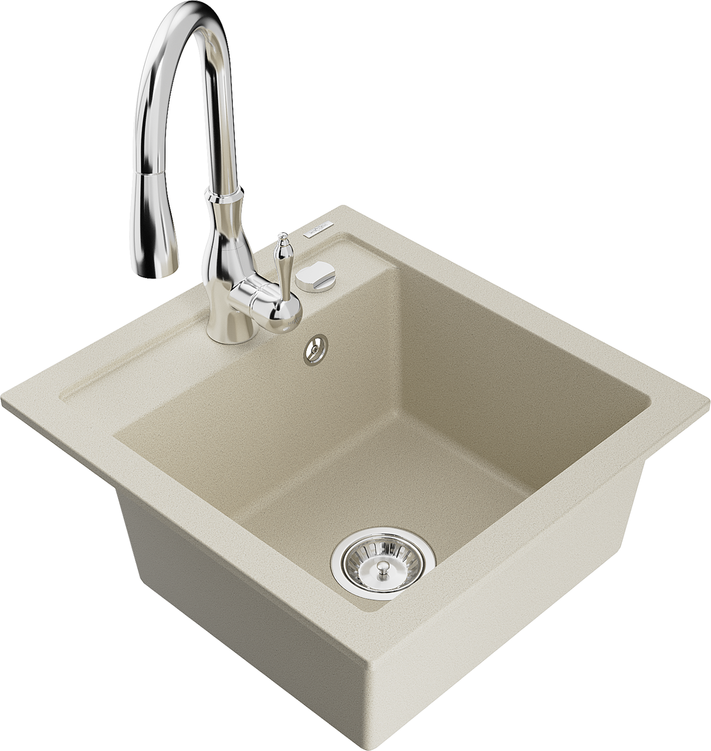 Mexen Vito granta izlietne ar 1 nodalījumu un virtuves jaucējkrānu Savita, bēša - 6503-69-672601-00
