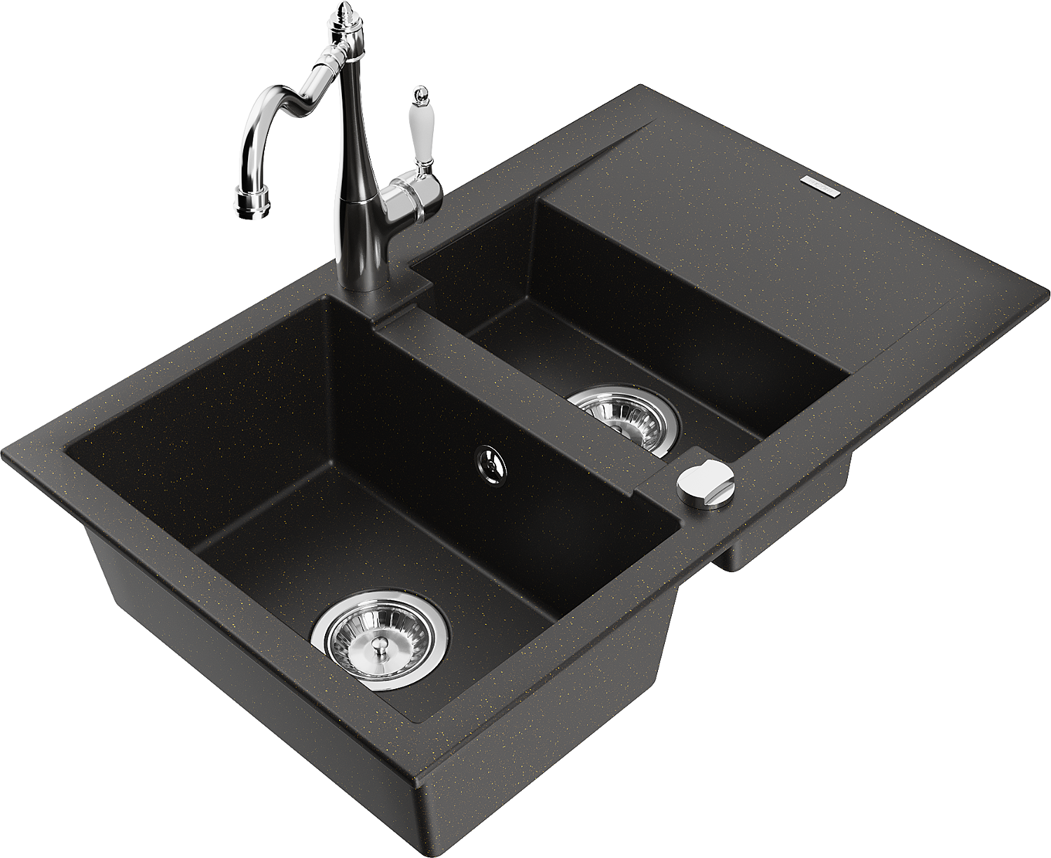 Mexen Gaspar granitizlietne 1,5 nodalījās ar noteku un virtuves krānu Carla, melns/zeltains metālisks - 6507-75-670700-00
