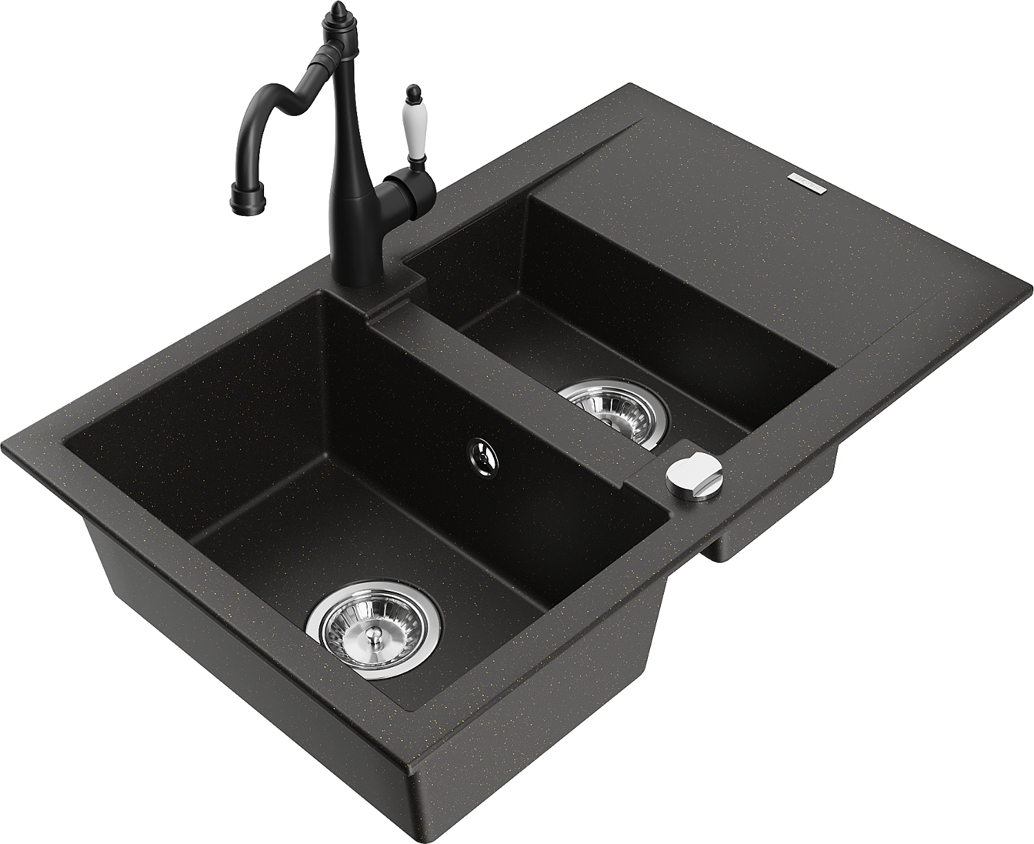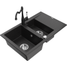 Mexen Gaspar granitais izlietne ar 1,5 nodalījumiem un notekas un virtuves jaucējkrānu Carla, melns/zeltains metālika