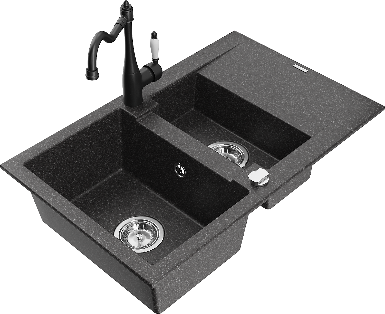 Mexen Gaspar granitizlietne 1,5 nodalījumu ar ūdens novadītāju un virtuves krānu Carla, melna raibumaina - 6507-76-670700-70