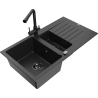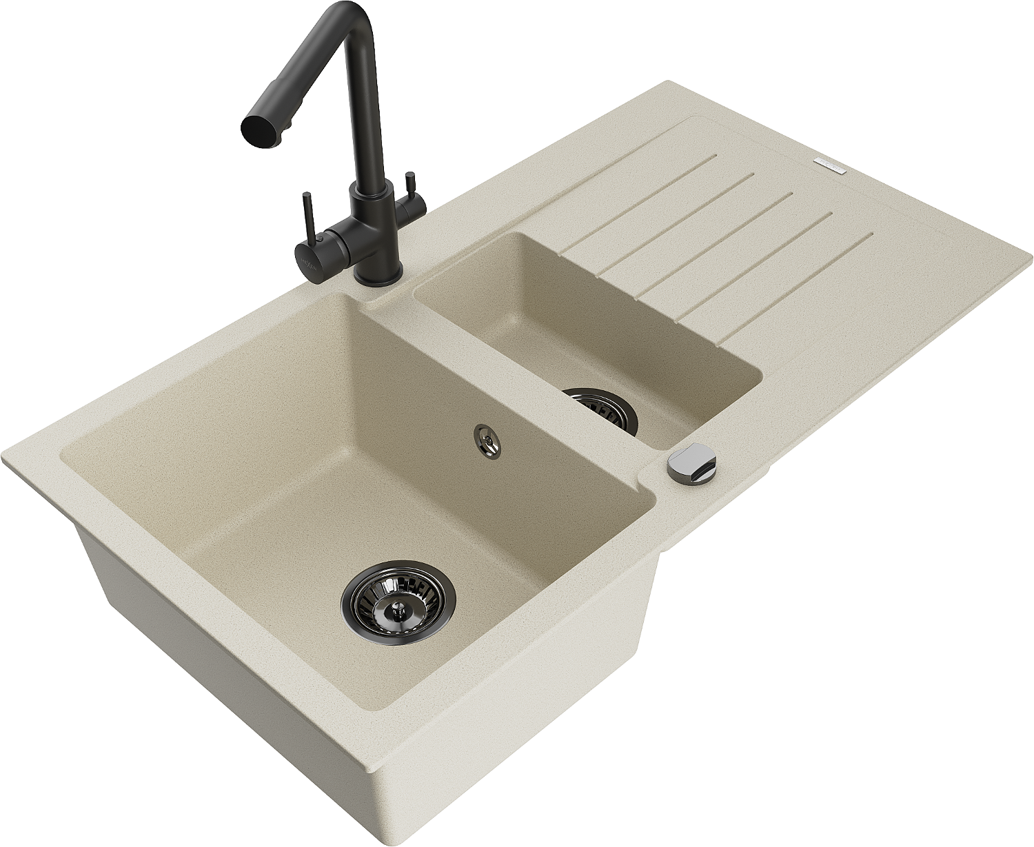 Mexen Matias granitā izlietne ar 1,5 kamerām un noteces dēli un virtuves krānu Duero, bēšs - 6502-69-671600-70