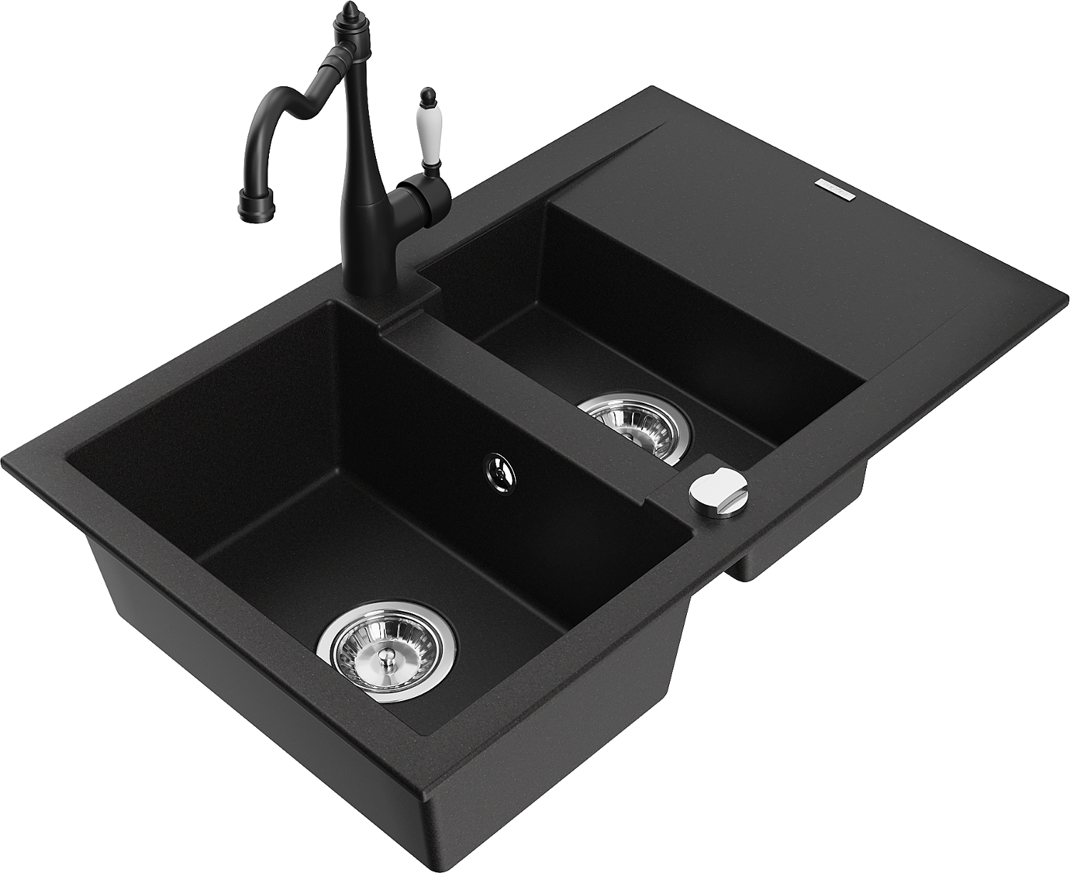Mexen Gaspar granit izlietne ar 1,5 nodalījumiem, ar noteci un virtuves jaucējkrānu Carla, melns - 6507-77-670700-00