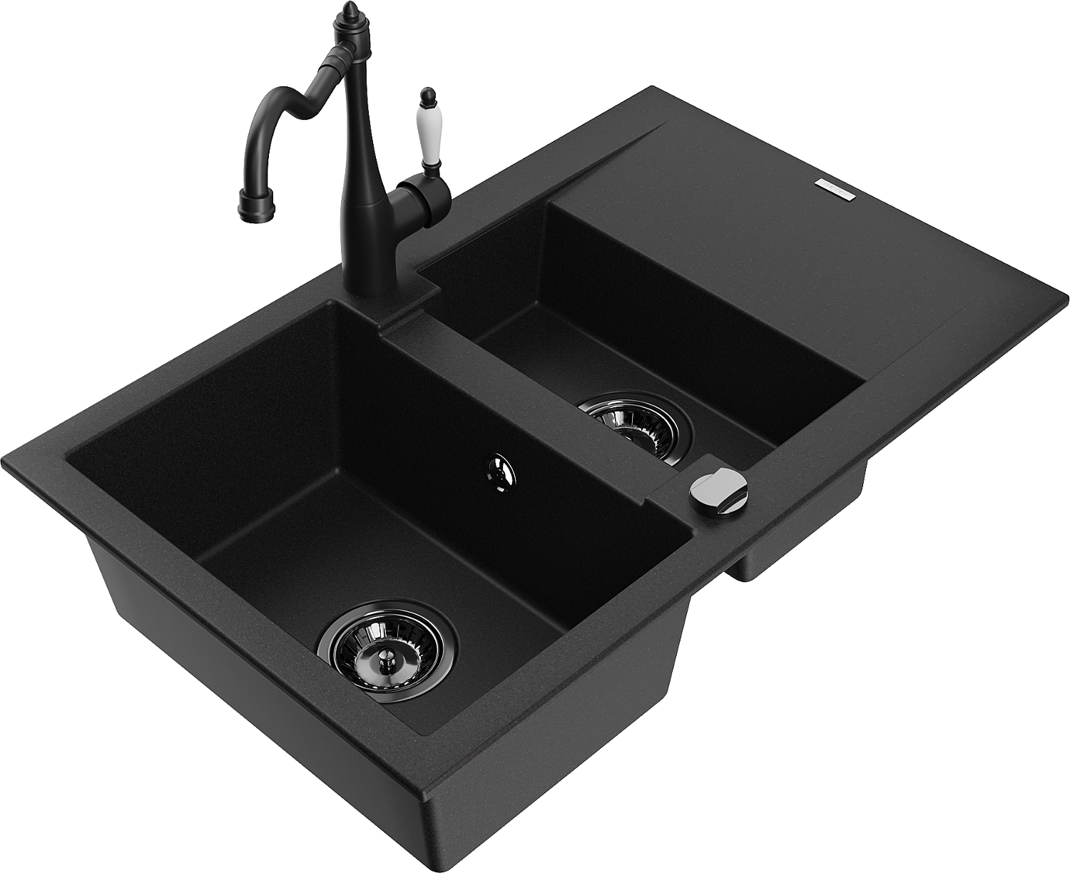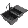 Mexen Gaspar granitizlietne 1,5 nodalījumu izlietne ar nosusinātāju un virtuves jaucējkrānu Carla, melns - 6507-77-670700-70-B