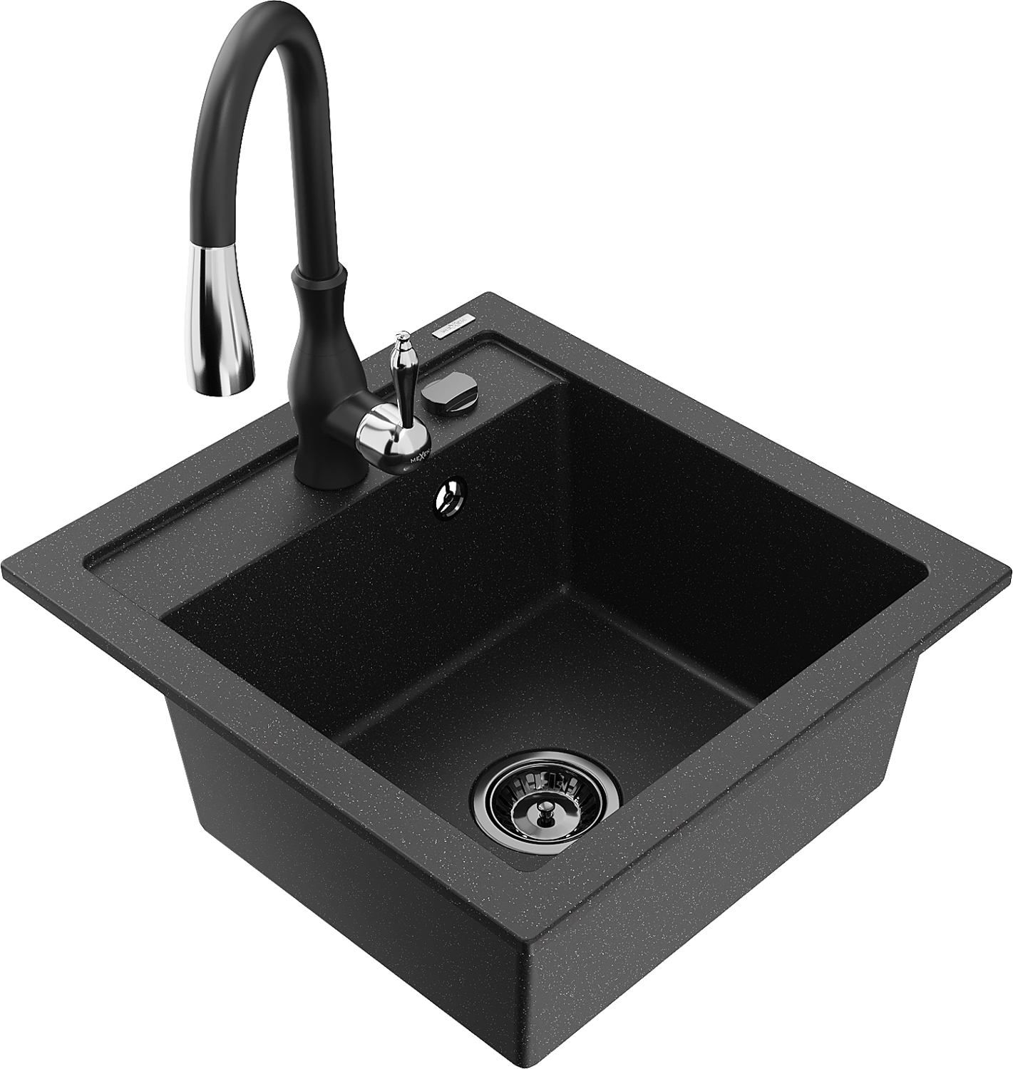 Mexen Vito granitē izlietne ar vienu nodalījumu un Savita virtuves jaucējkrānu, melna/sudraba metāliks - 6503-73-672601-70-B