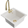 Mexen Vito granīta izlietne ar 1 nodalījumu un virtuves jaucējkrānu Savita, melna/zelta metāliska - 6503-75-672601-50