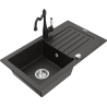 Mexen Pablo granīta izlietne ar vienu nodalījumu, noteces paneli un virtuves jaucējkrānu Carla, bēšs - 6510-69-670700-69