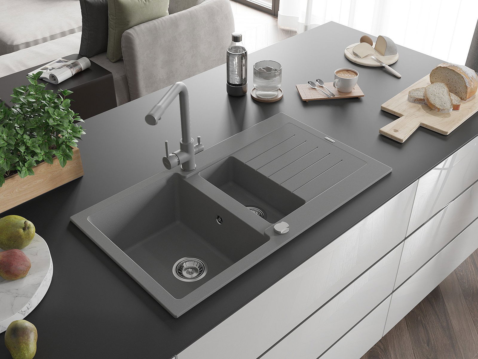 Mexen Matias granitizlietne 1,5 nodalījumu ar noteces vietu un virtuves jaucējkrāns Duero, pelēks - 6502-71-671600-71