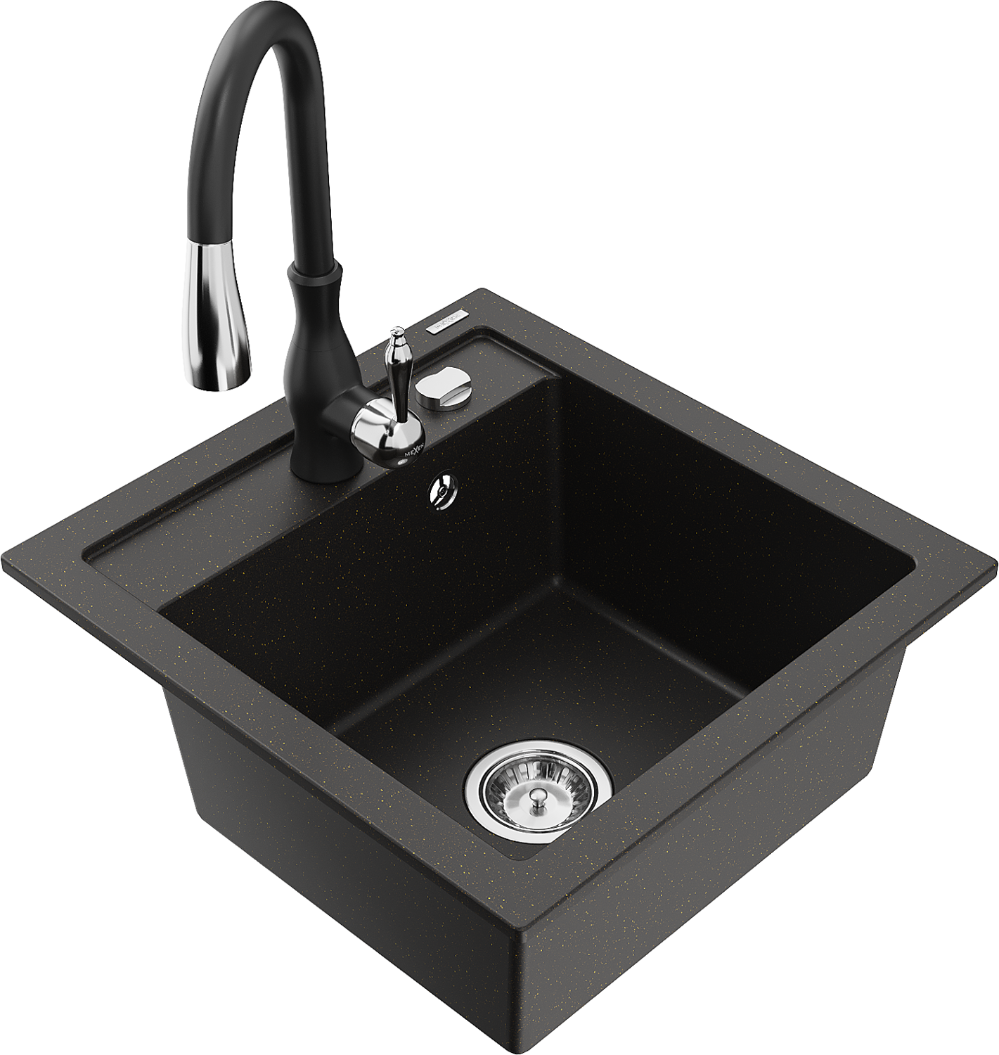 Mexen Vito granitizlietne ar vienu nodalījumu un virtuves jaucējkrānu Savita, melns/zeltains metālisks - 6503-75-672601-70