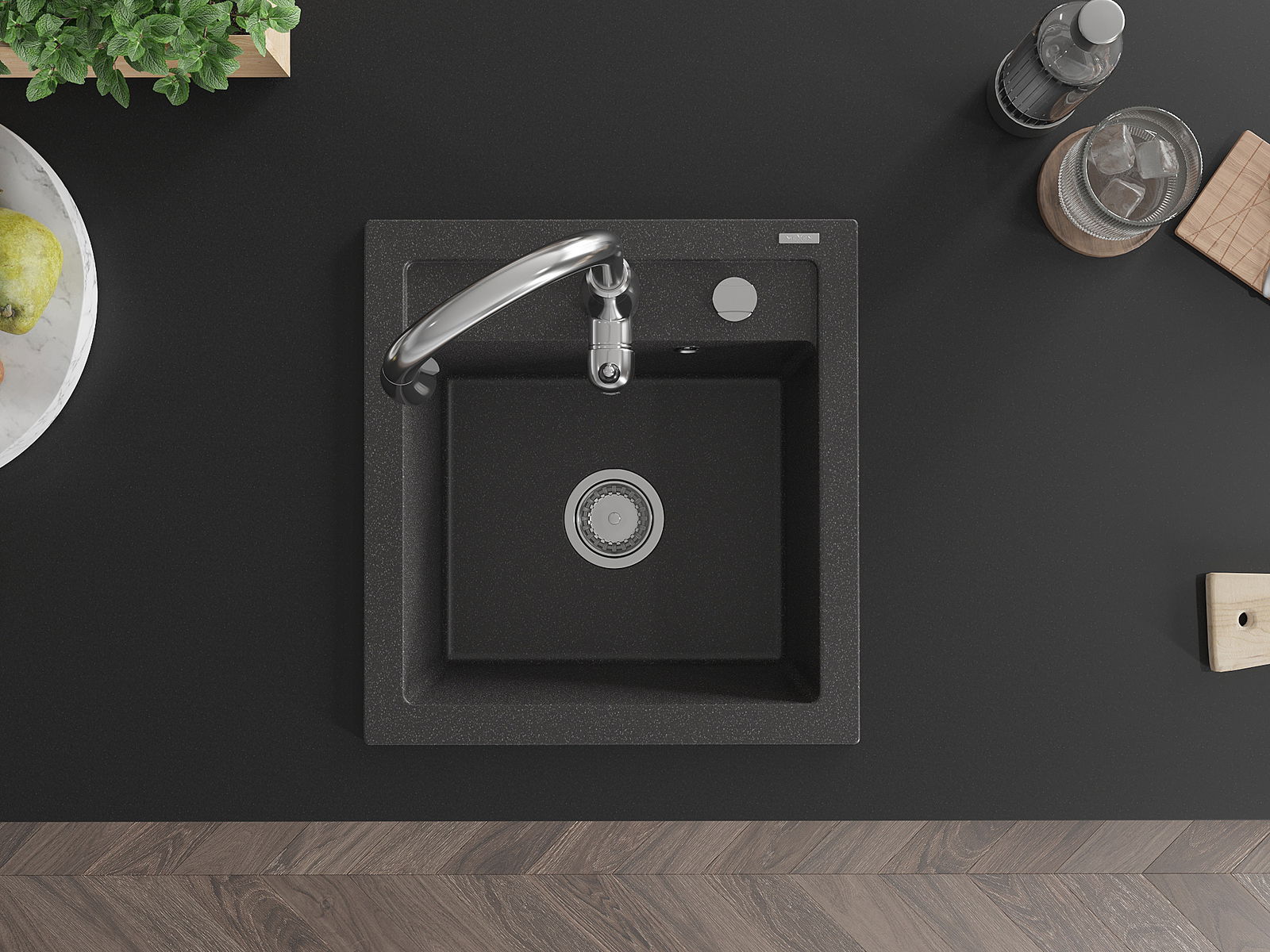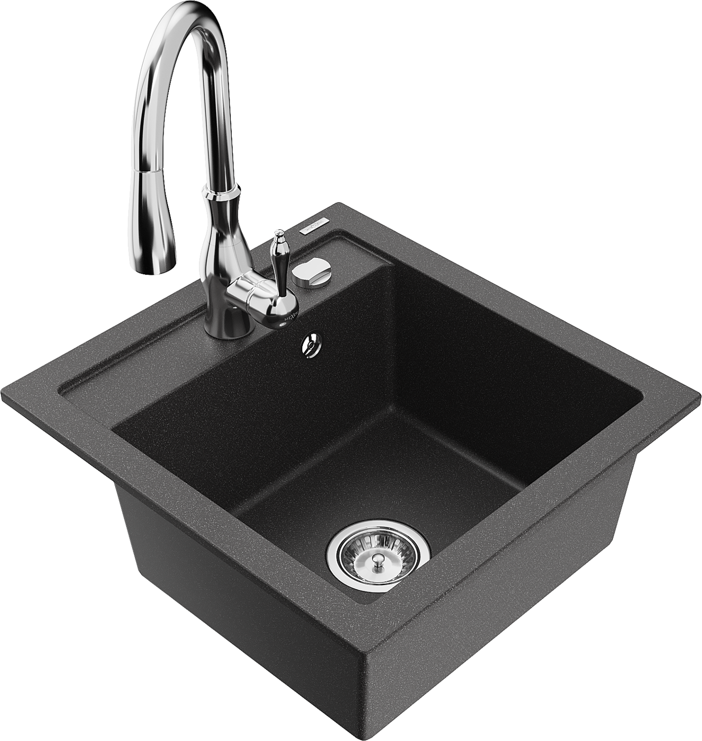 Mexen Vito granit izlietne ar vienu nodalījumu un virtuves jaucējkrānu Savita, melna ar plankumiem - 6503-76-672601-00