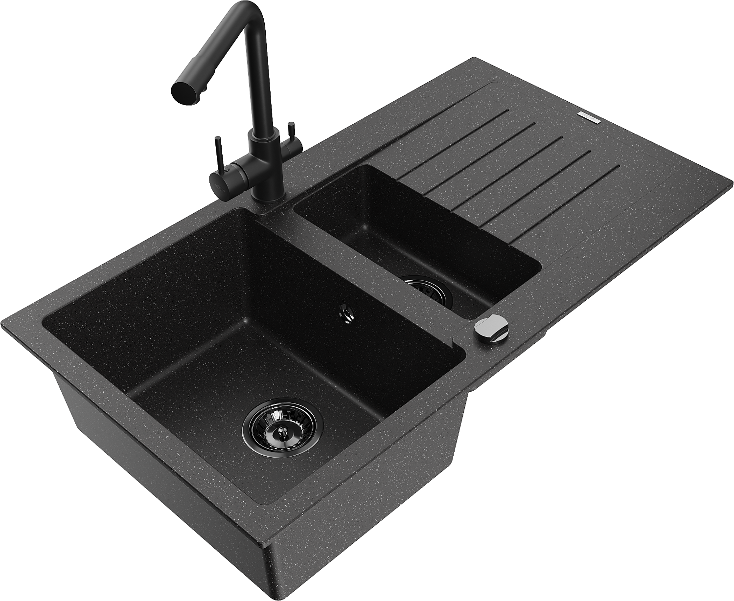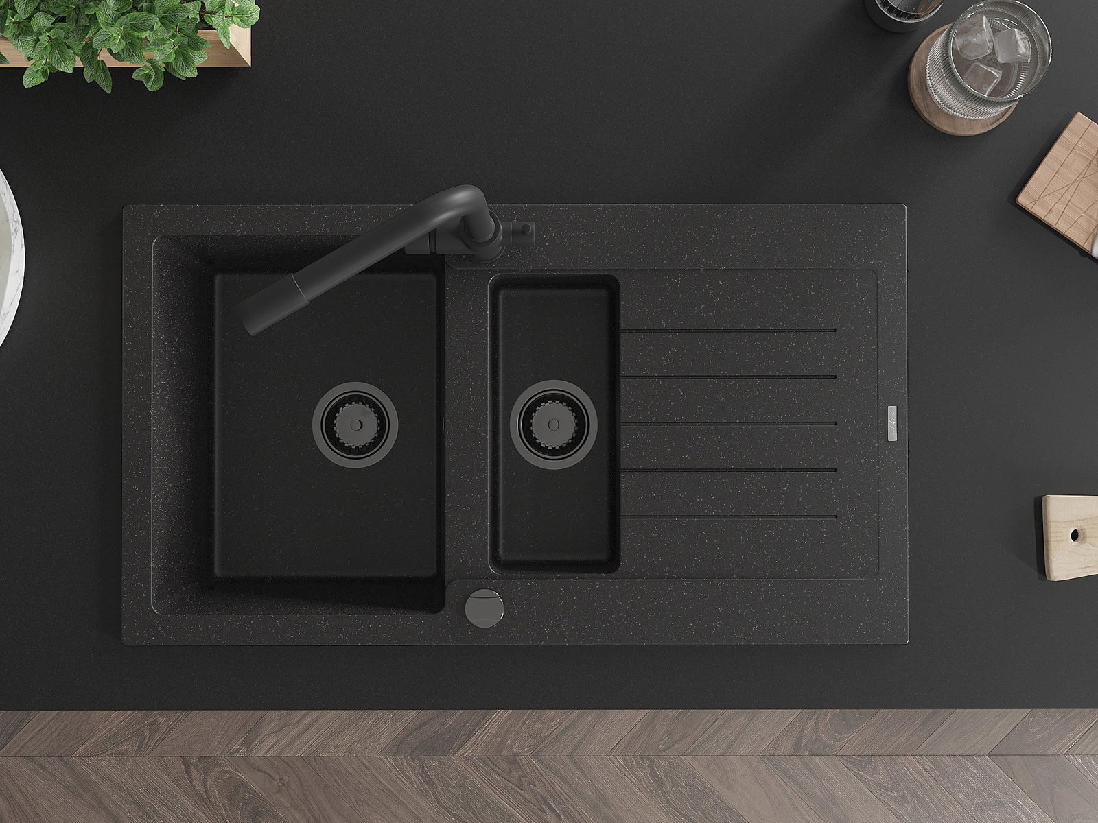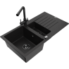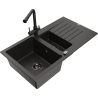Mexen Matias grānīta izlietne ar 1,5 nodalījumiem, ar notekas vietu un virtuves bateriju Duero, melna/sudraba
