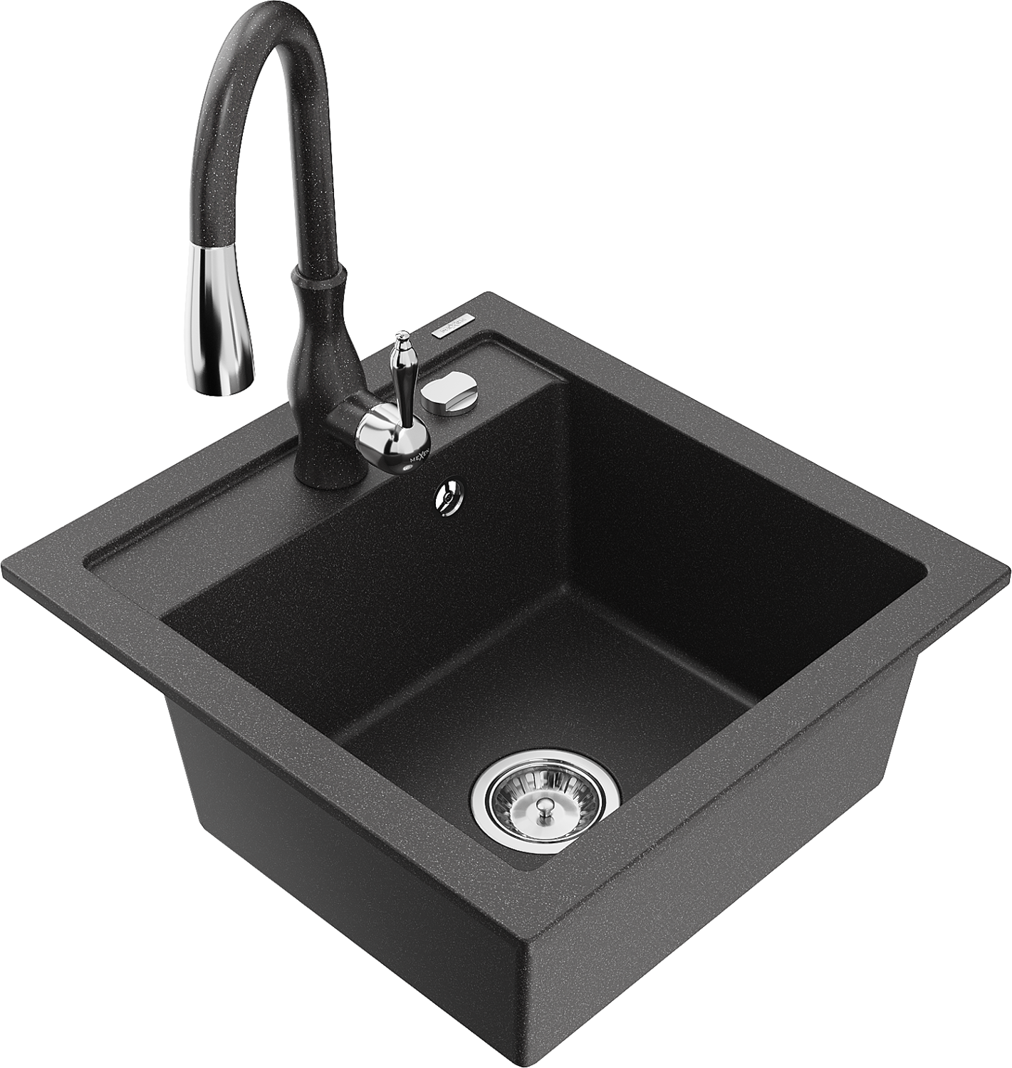 Mexen Vito granīta izlietne ar 1 kameru un virtuves krānu Savita, melna ar plankumiem - 6503-76-672601-76