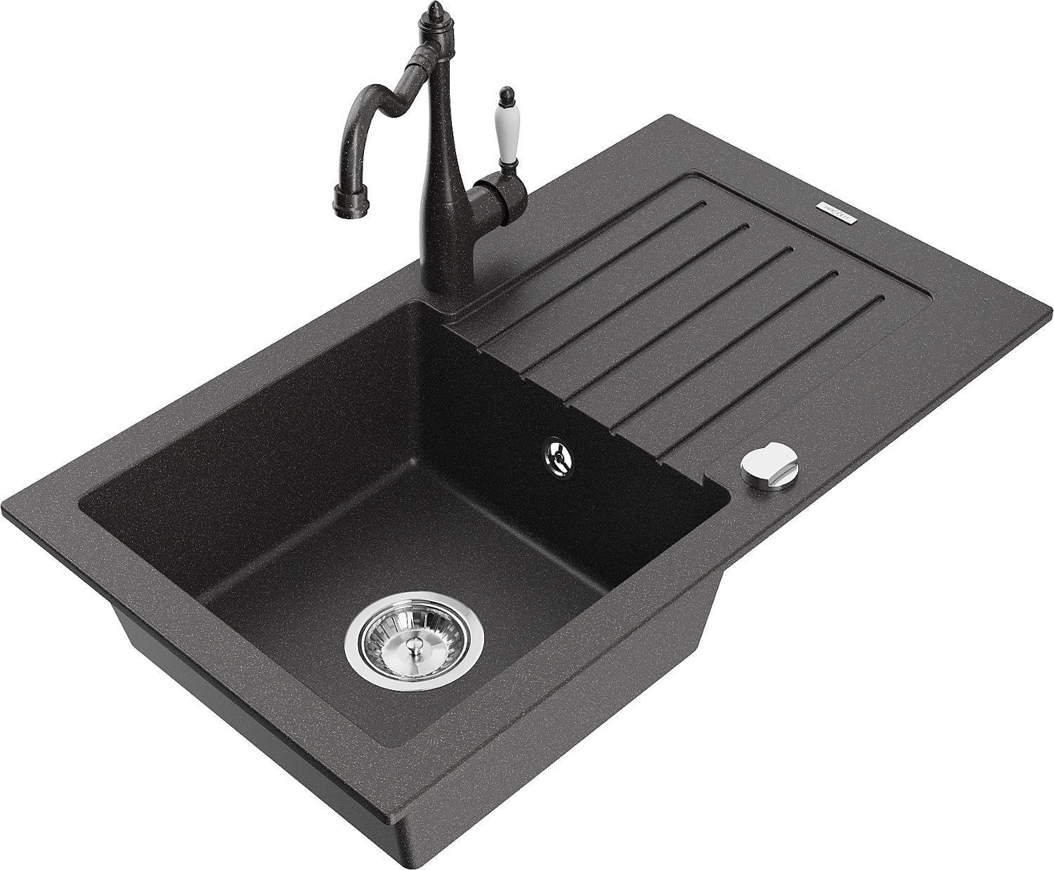 Mexen Pablo granitizlietne 1-nodalījumu izlietne ar noteci un virtuves jaucējkrānu Carla, melns ar plankumiem