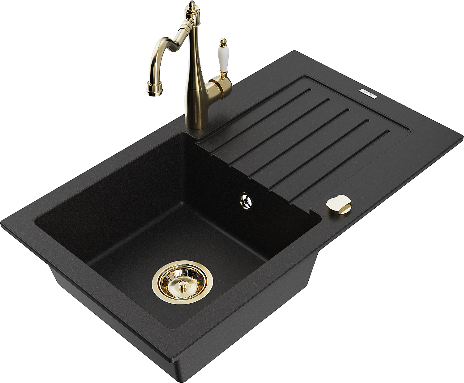 Mexen Pablo granīta izlietne ar 1 nodalījumu, noteci un Carla virtuves jaucējkrānu, melna - 6510-77-670700-50