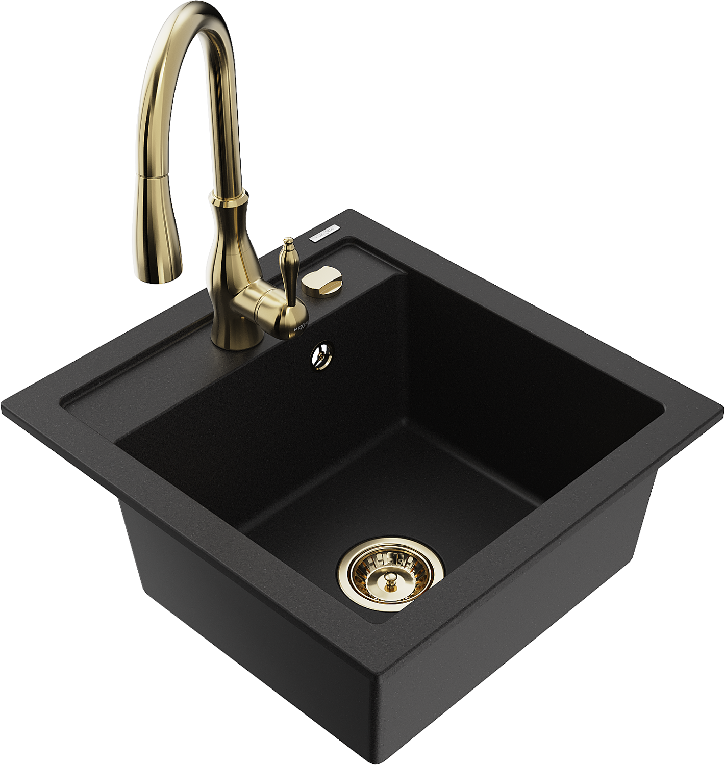 Mexen Vito granitais izlietne ar 1 nodalījumu un virtuves jaucējkrānu Savita, melna - 6503-77-672601-50