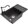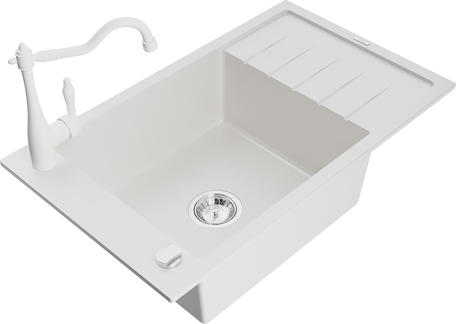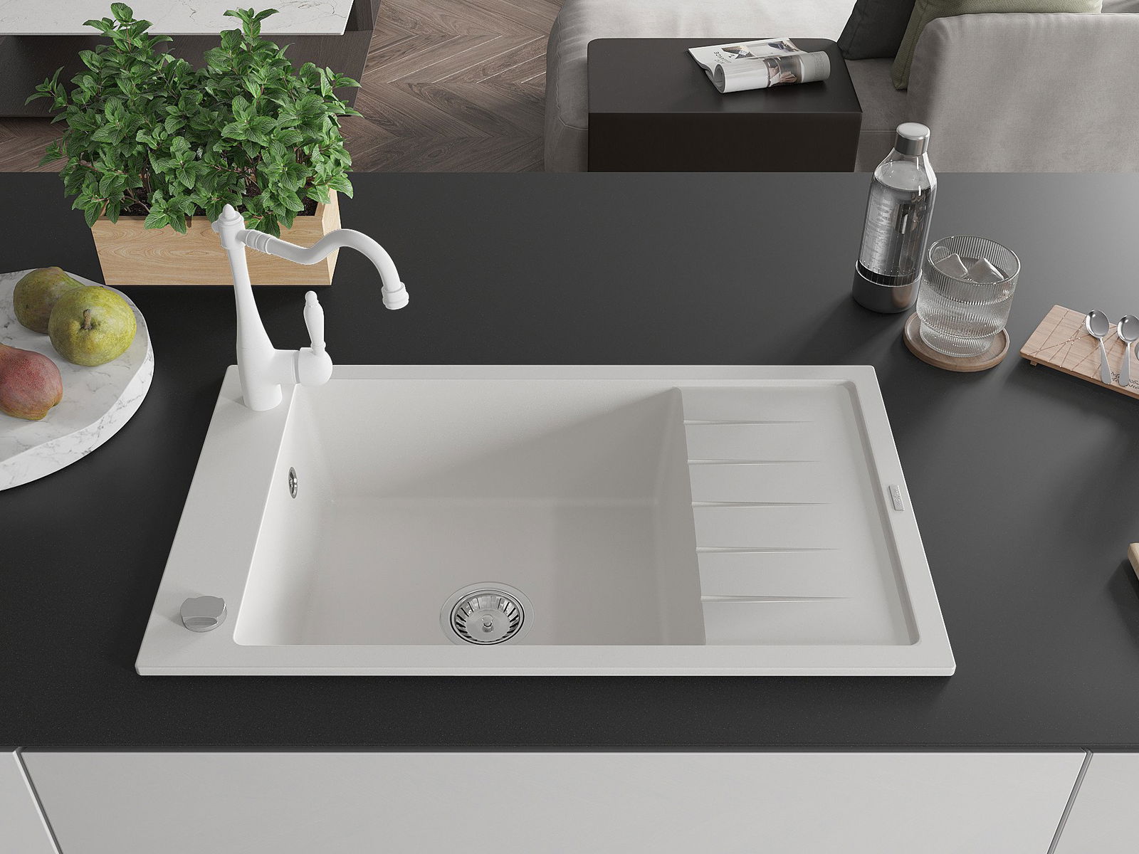 Mexen Elias granit izlietne ar 1 nodalījumu ar noteces vietu un virtuves jaucējkrānu Carla, balta - 6511-20-670700-20