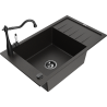 Mexen Elias granitē izlietne ar vienu nodalījumu, notecinātāju un virtuves jaucējkrānu Carla, balts - 6511-20-670700-70