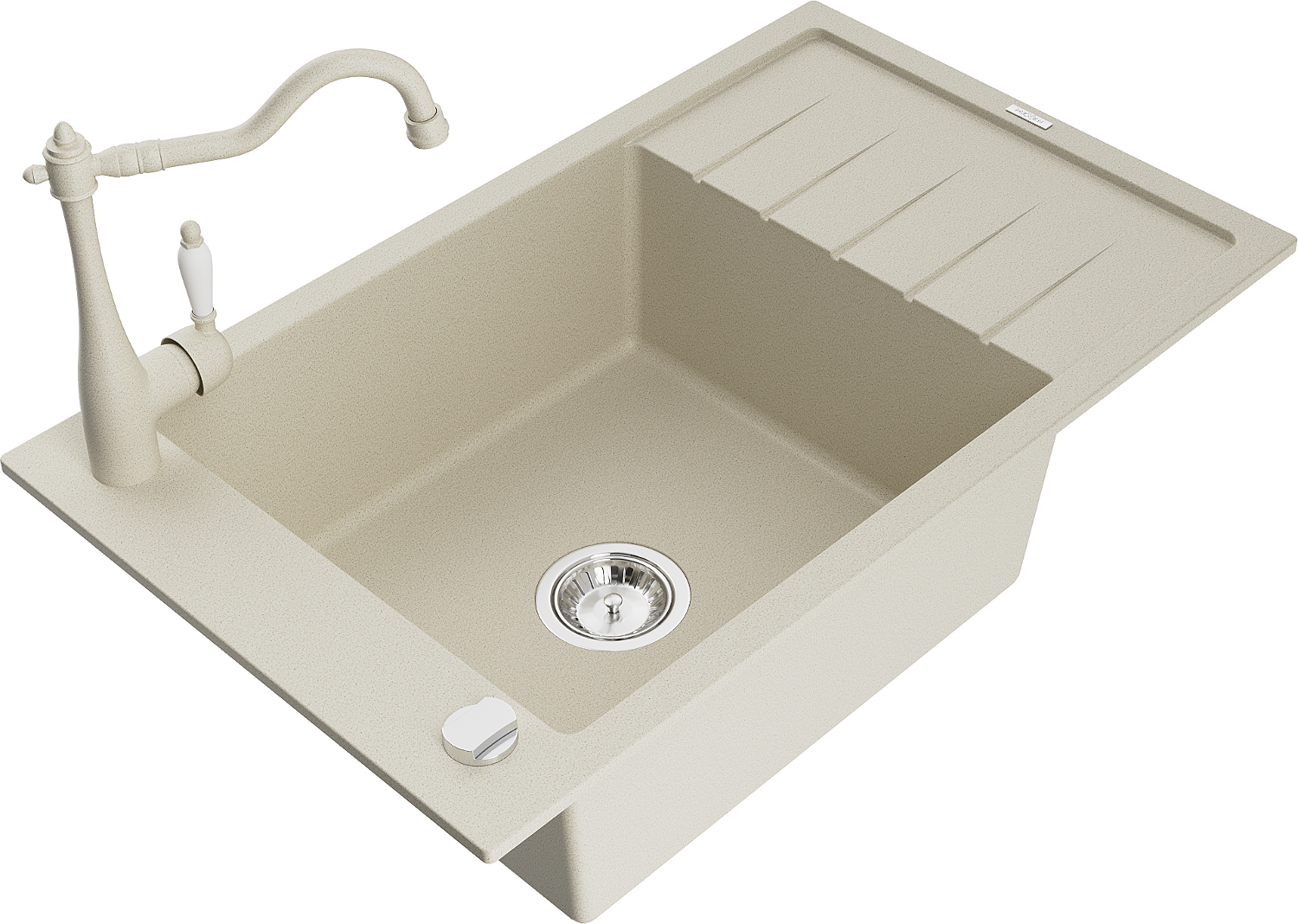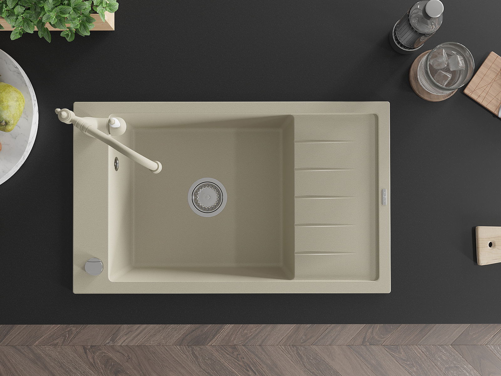 Mexen Elias granitizlietne jaucējkrāns ar 1 nodalījumu, notekpaplāti un Carla virtuves jaucējkrānu, bēšs - 6511-69-670700-69