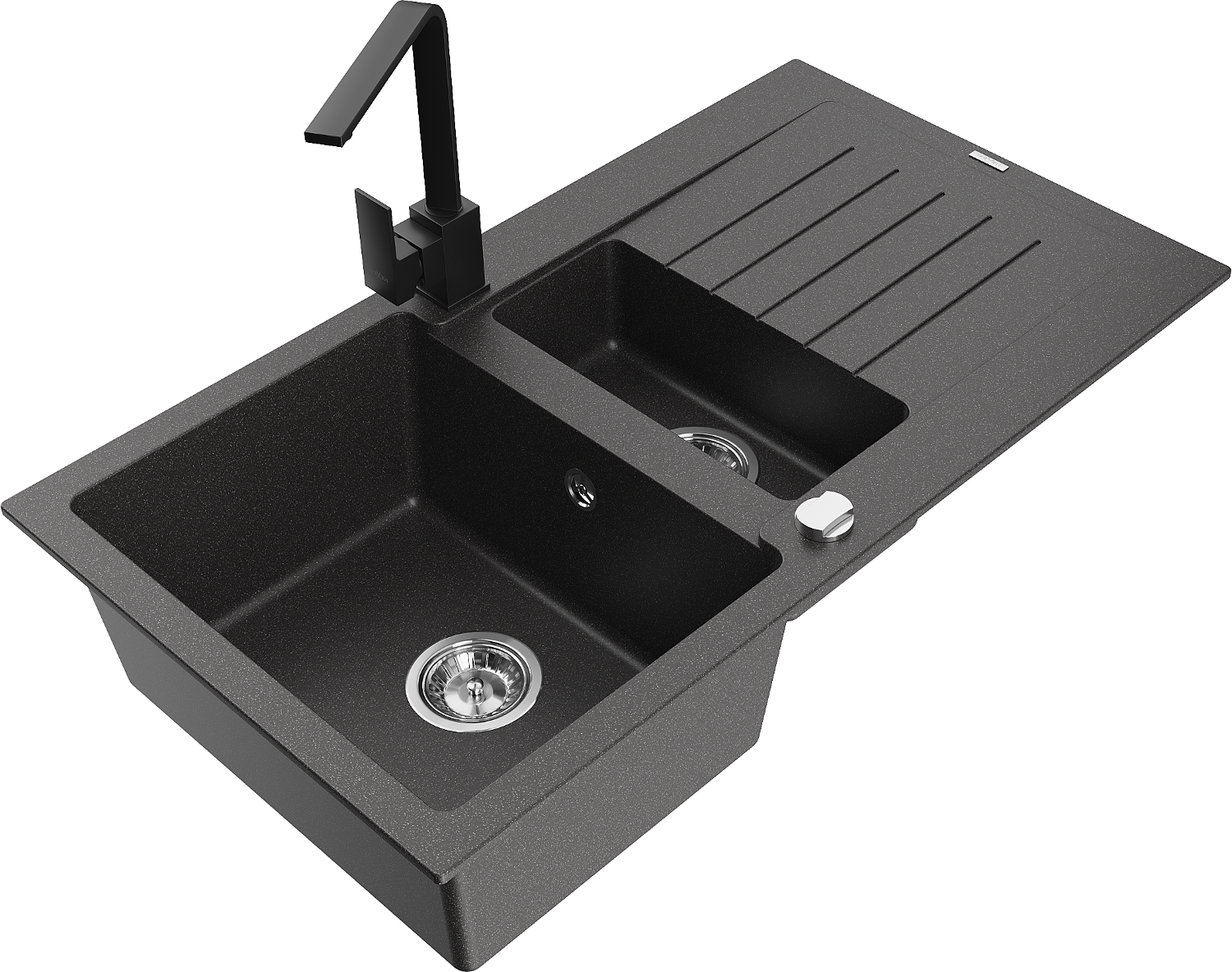 Mexen Matias granitizlietne 1,5 nodalījumu ar noteces paplāti un virtuves jaucējkrānu Rita, melns ar raibumu - 6502-76-670300-70