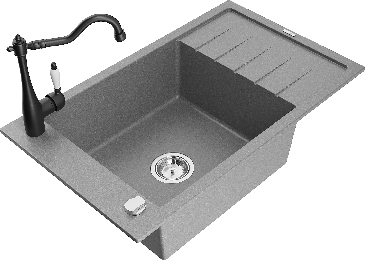 Mexen Elias granitizlietne 1-nodalījumu ar noteci un virtuves jaucējkrānu Carla, pelēka - 6511-71-670700-70