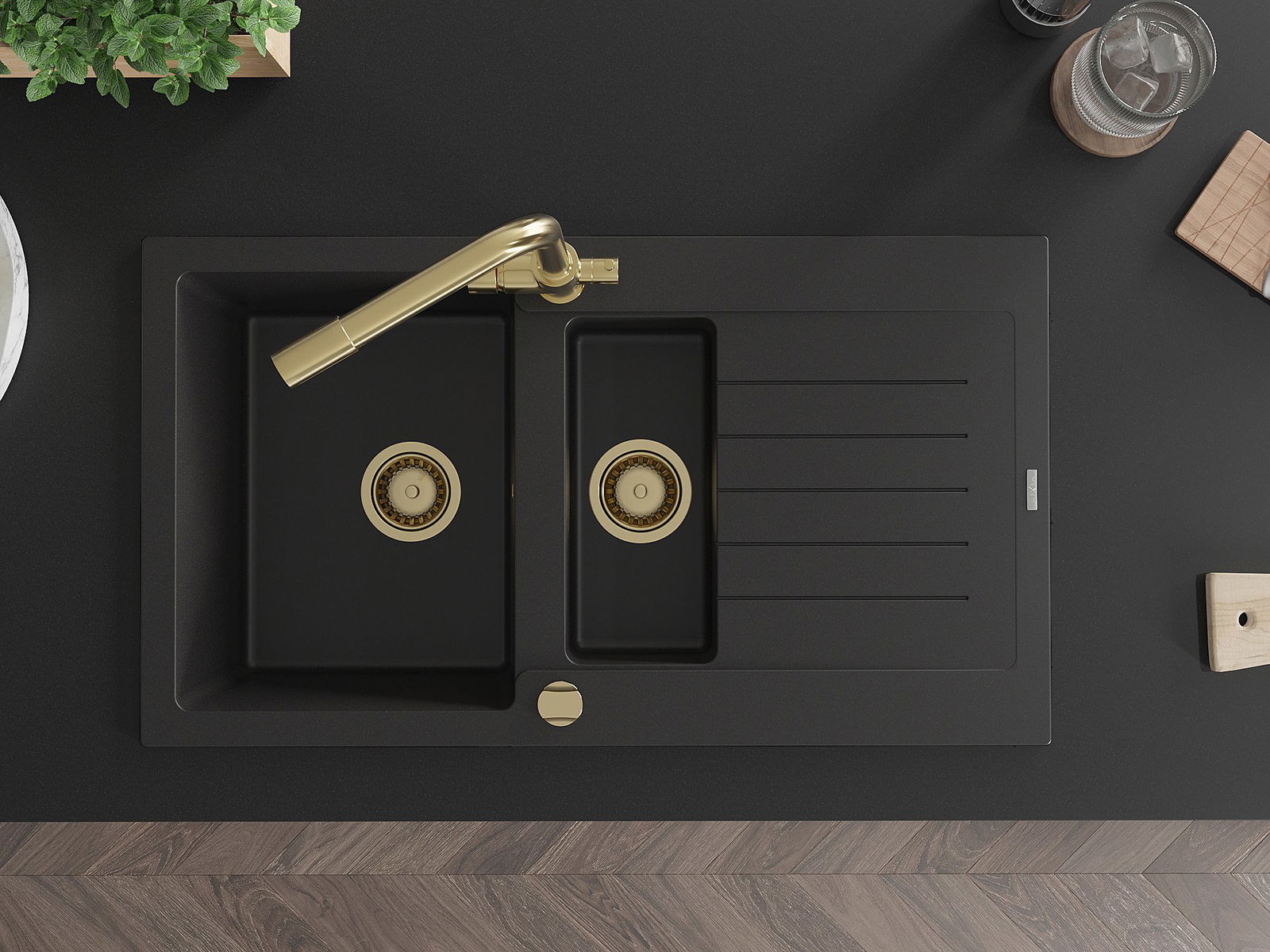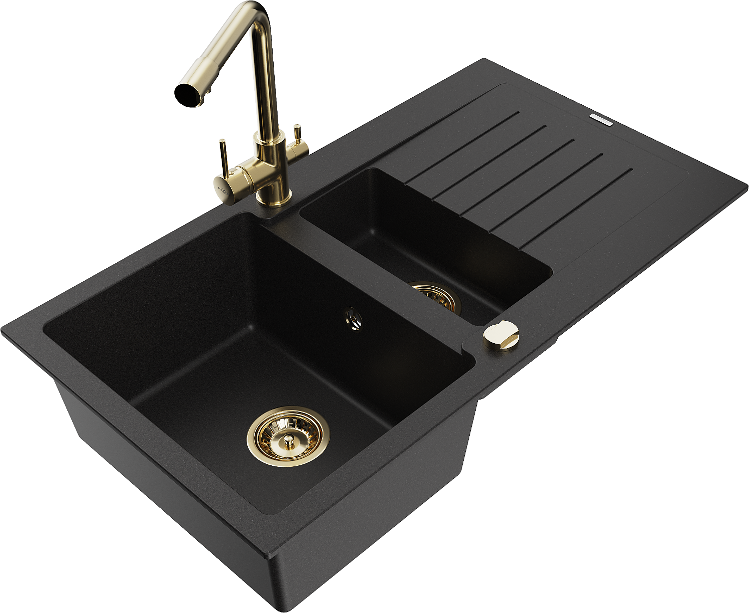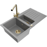 Mexen Matias granitā izlietne ar 1,5 kamerām, notekpaplāti un virtuves jaucējkrānu Duero, melna - 6502-77-671600-50