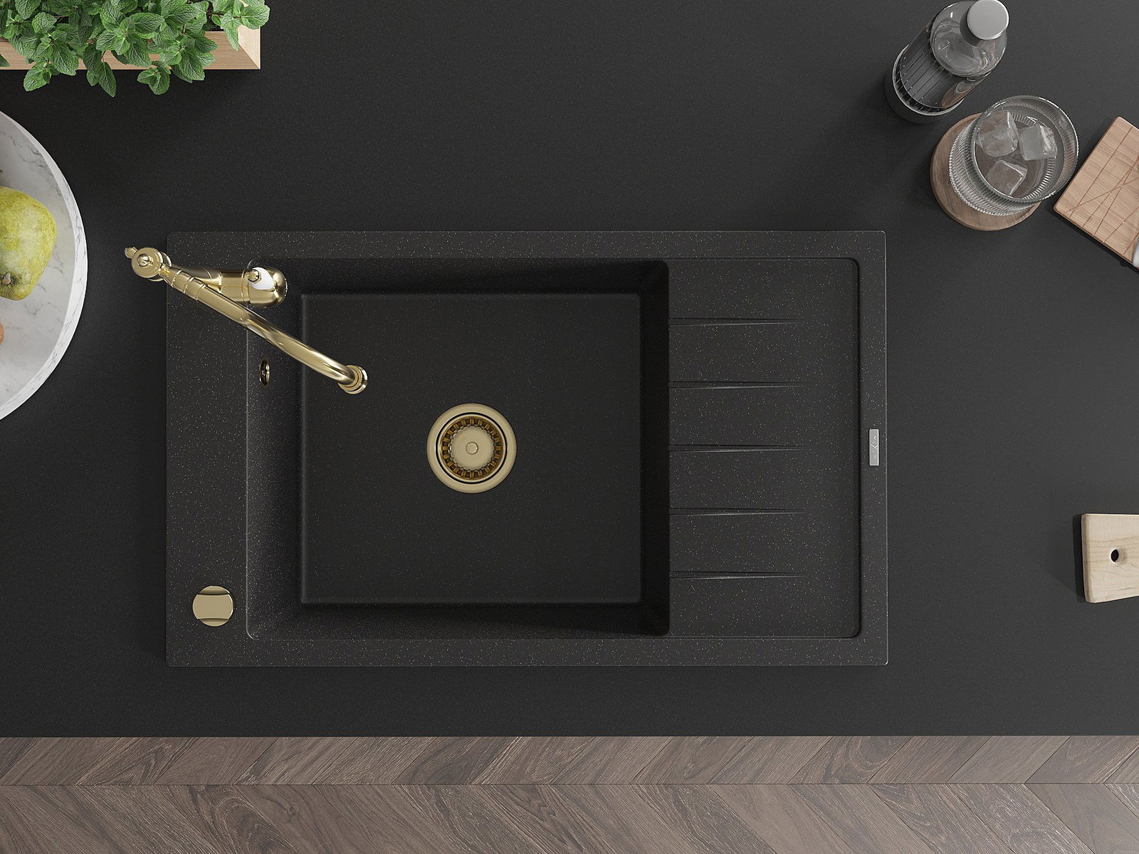 Mexen Elias granitizlietne 1 nodalījumu ar iztukšošanu un virtuves jaucējkrānu Carla, melns/sudraba metāliks