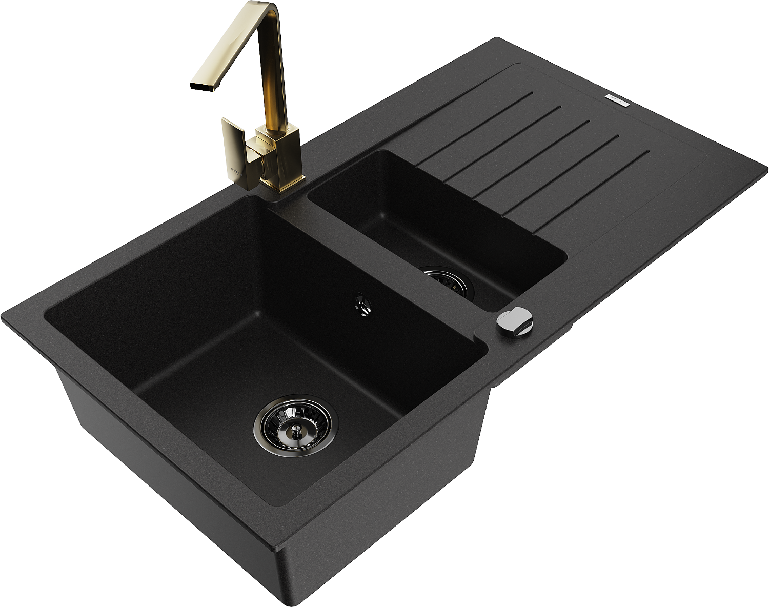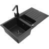 Mexen Matias granīta izlietne 1,5 nodalījumu ar noteku un virtuves jaucējkrānu Rita, melna - 6502-77-670300-50-B