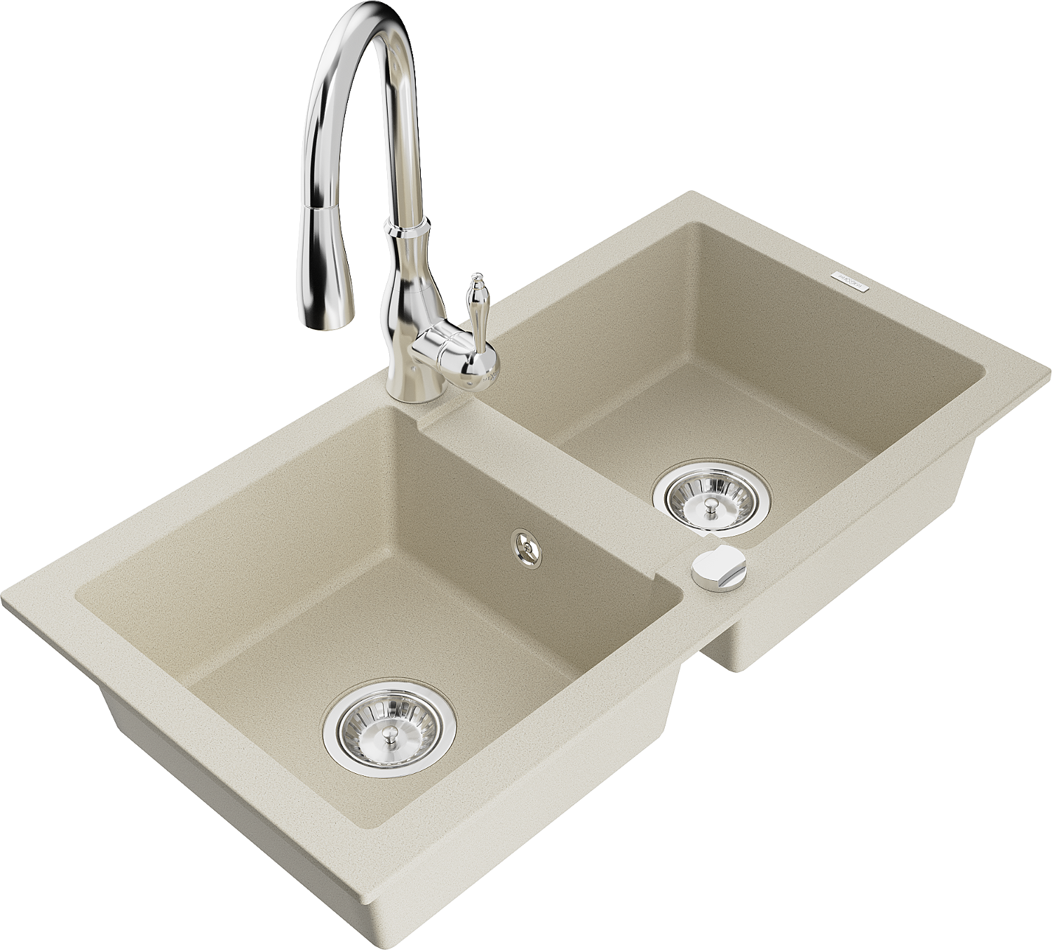 Mexen Mario granīta izlietne ar 2 nodalījumiem un virtuves jaucējkrānu Savita, bēša - 6504-69-672601-00