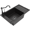 Mexen Elias granitizlietne ar vienu bļodu un noteci un virtuves jaucējkrāns Carla, melns ar pūķu rakstu
