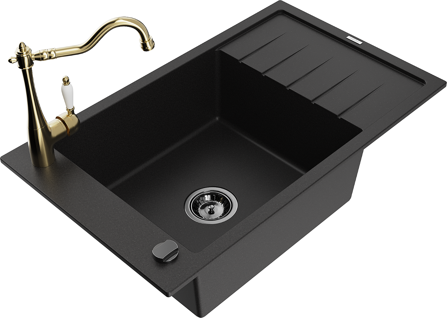 Mexen Elias granitny izlietne ar vienu nodalījumu un izžāvētāju un virtuvs jaucējkrānu Carla, melns - 6511-77-670700-50-B