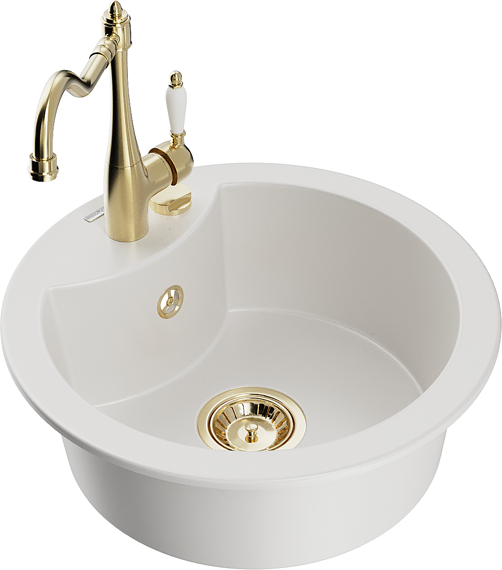 Mexen Diego granitā izlietne ar 1 kameru un virtuves jaucējkrānu Carla, balta - 6512-20-670700-50