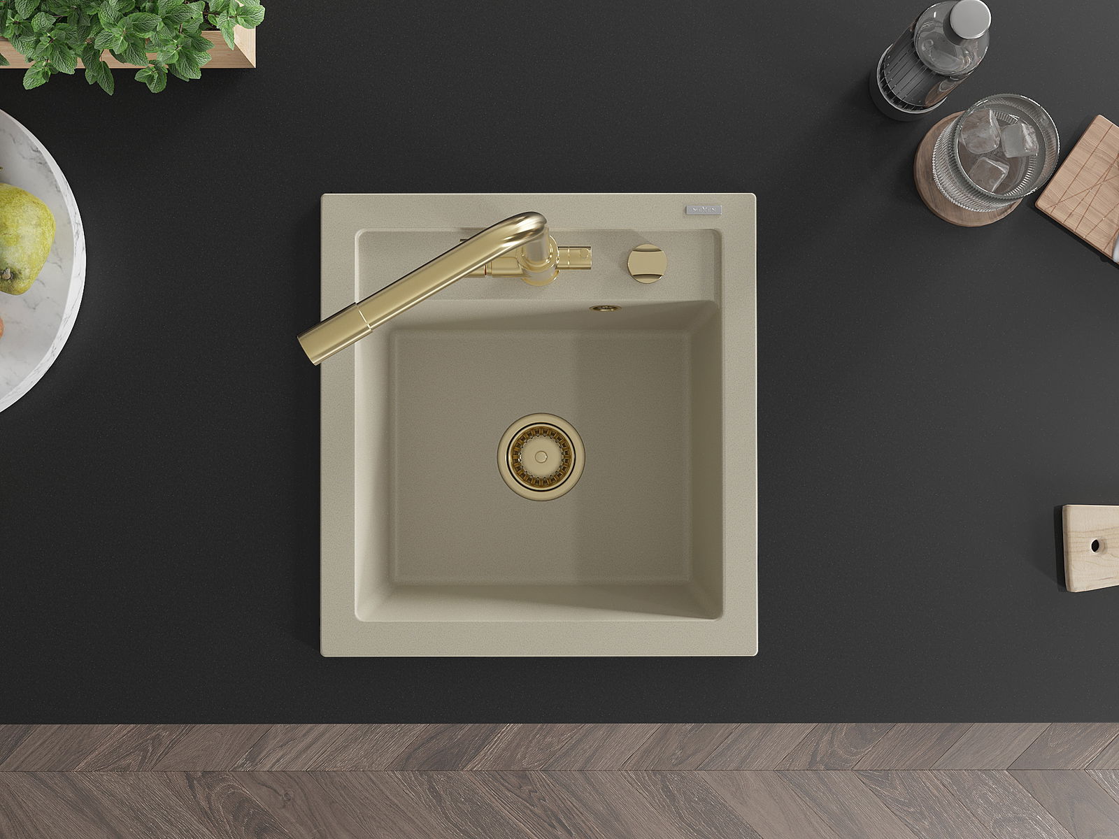 Mexen Vito 1-kameru granīta izlietne ar virtuves jaucējkrānu Duero, bēšs - 6503-69-671600-50