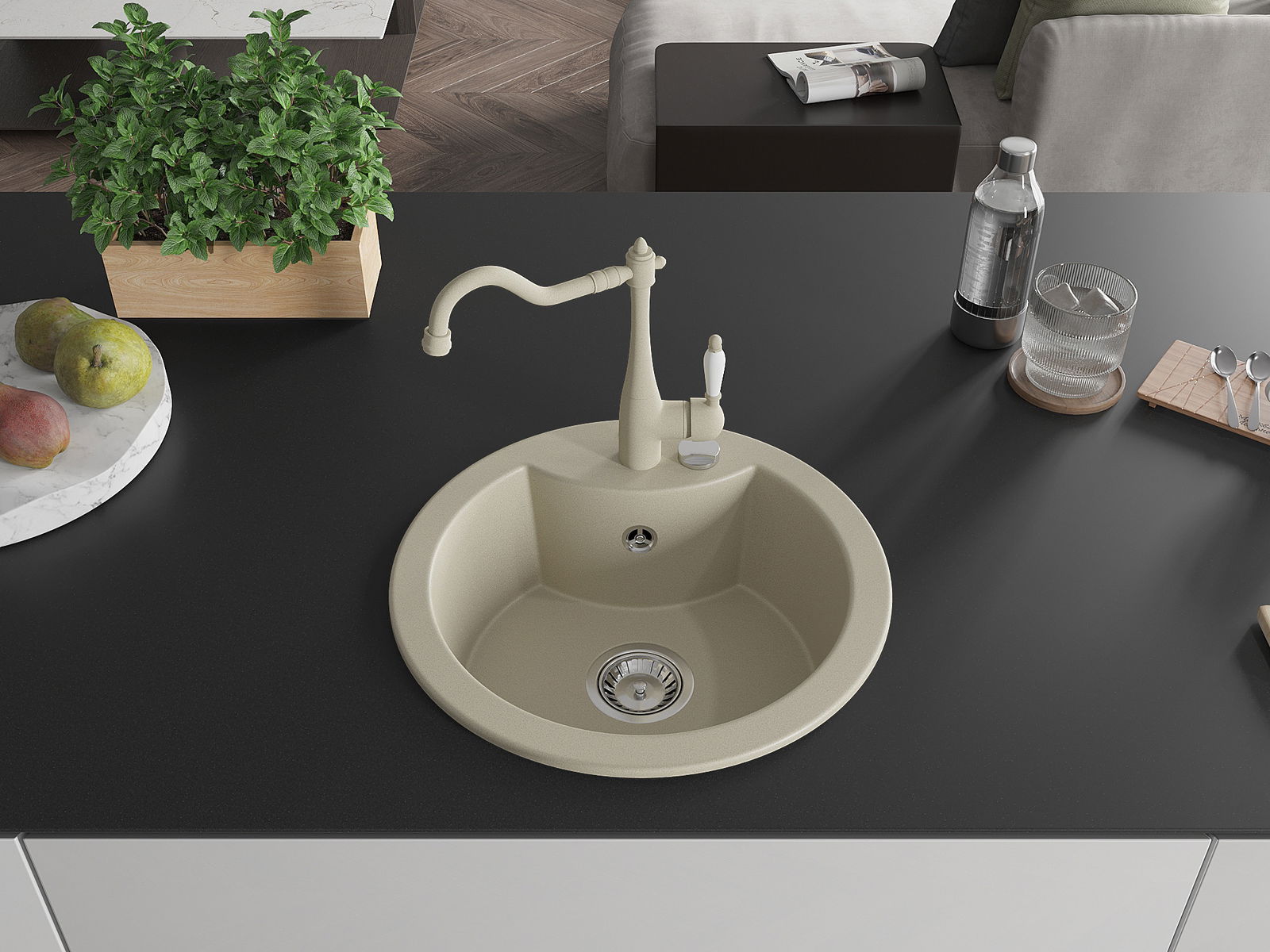 Mexen Diego Granit izlietne ar vienu nodalījumu un virtuves jaucējkrānu Carla, bēšs - 6512-69-670700-69