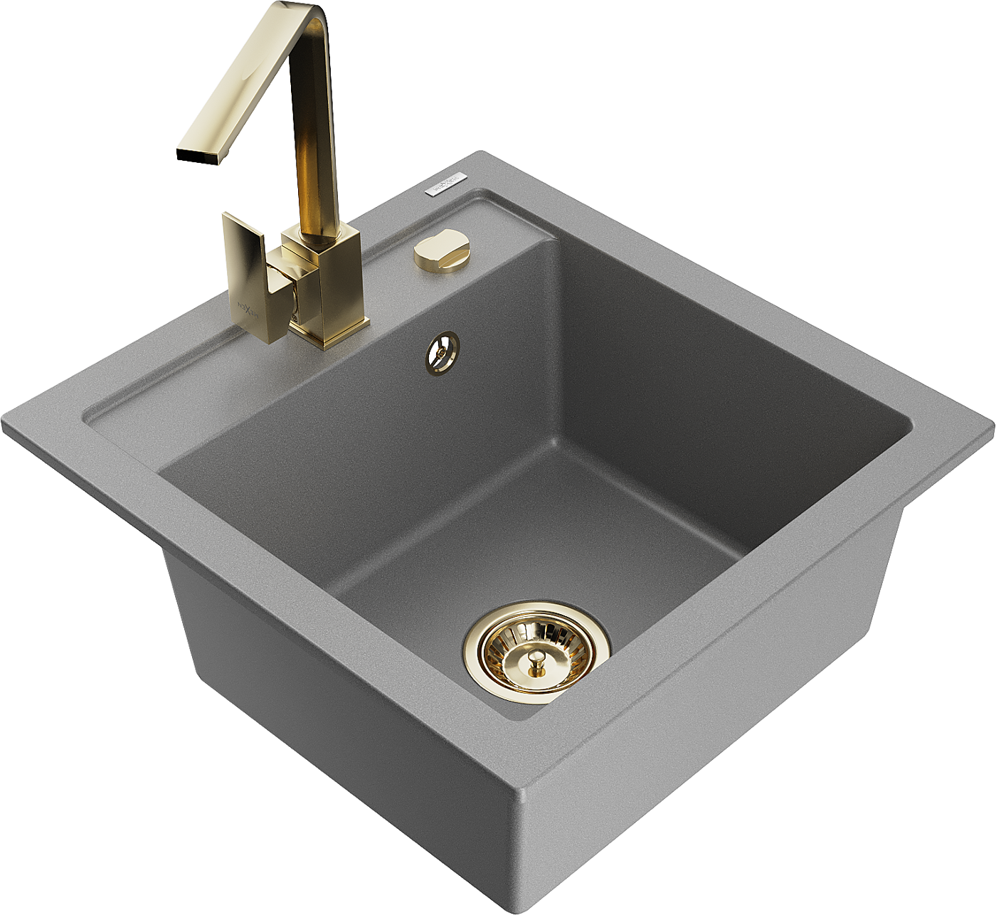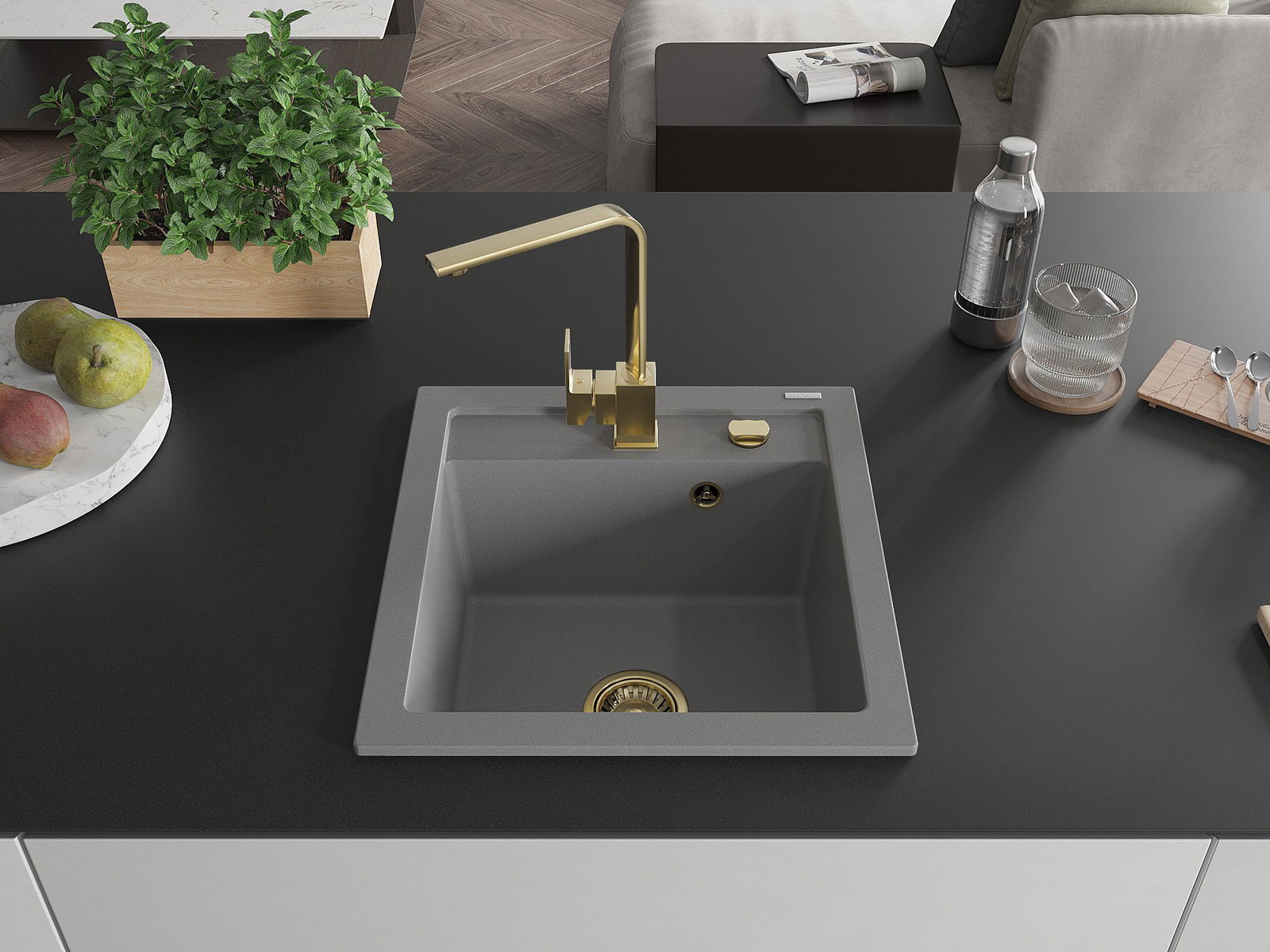 Mexen Vito granit izlietne ar 1 nodalījumu un virtuves krānu Rita, pelēka - 6503-71-670300-50