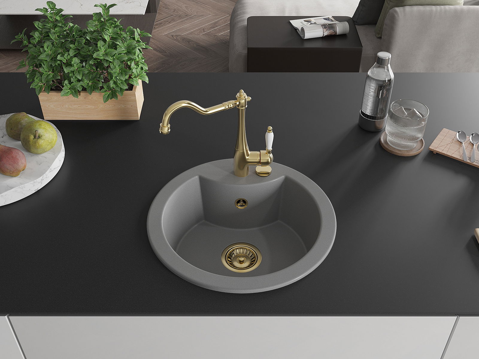 Mexen Diego viena granīta izlietne ar virtuves jaucējkrānu Carla, pelēka - 6512-71-670700-50