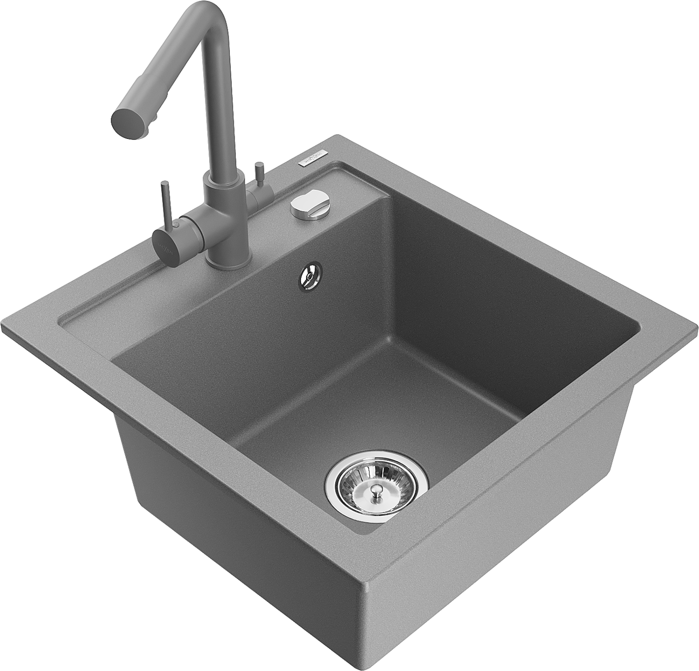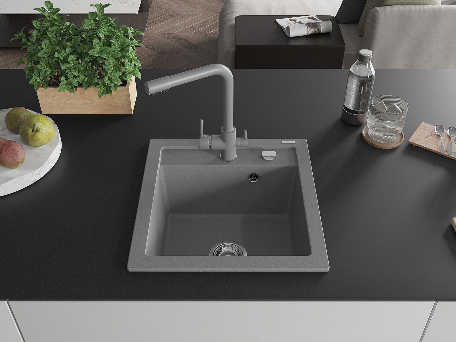 Mexen Vito granitizlietne ar vienu nodalījumu un virtuves jaucējkrānu Duero, pelēks - 6503-71-671600-71