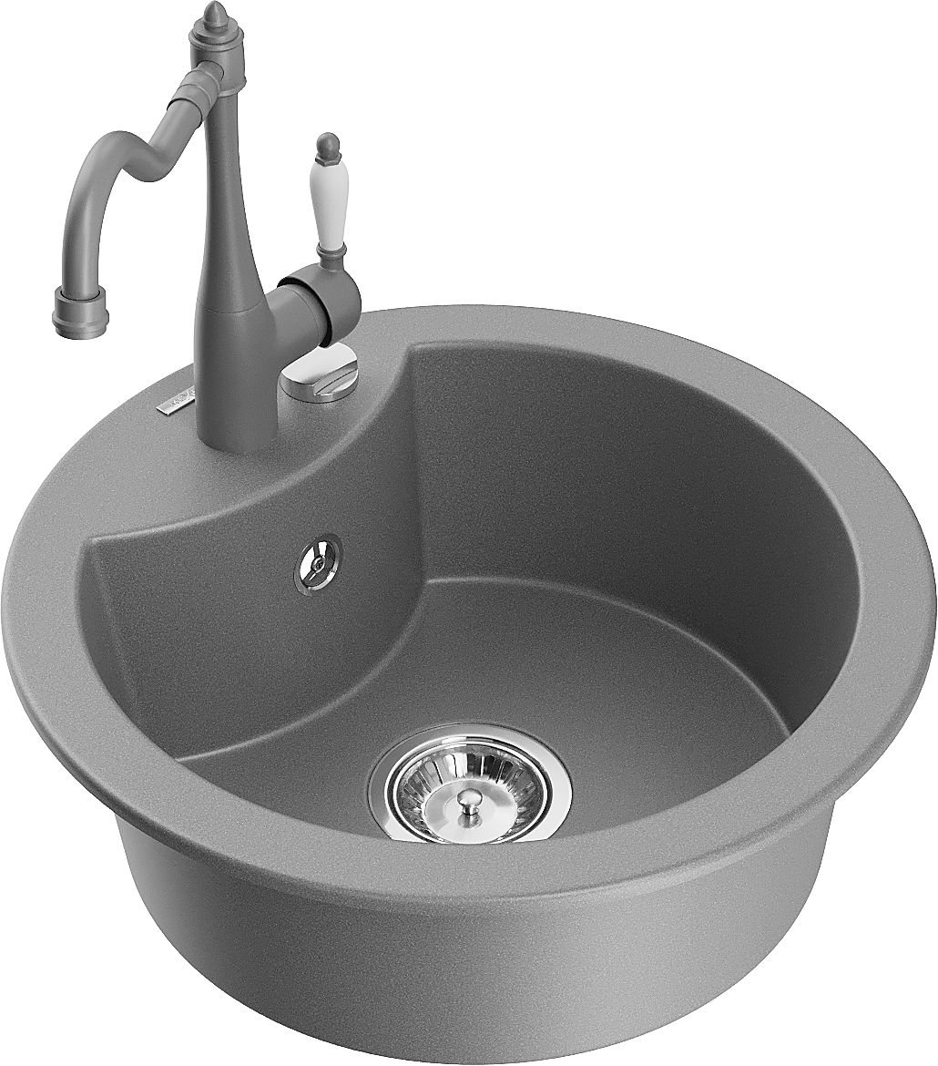 Mexen Diego granitā izlietne ar vienu kameru un Carla virtuves jaucējkrānu, pelēka - 6512-71-670700-71