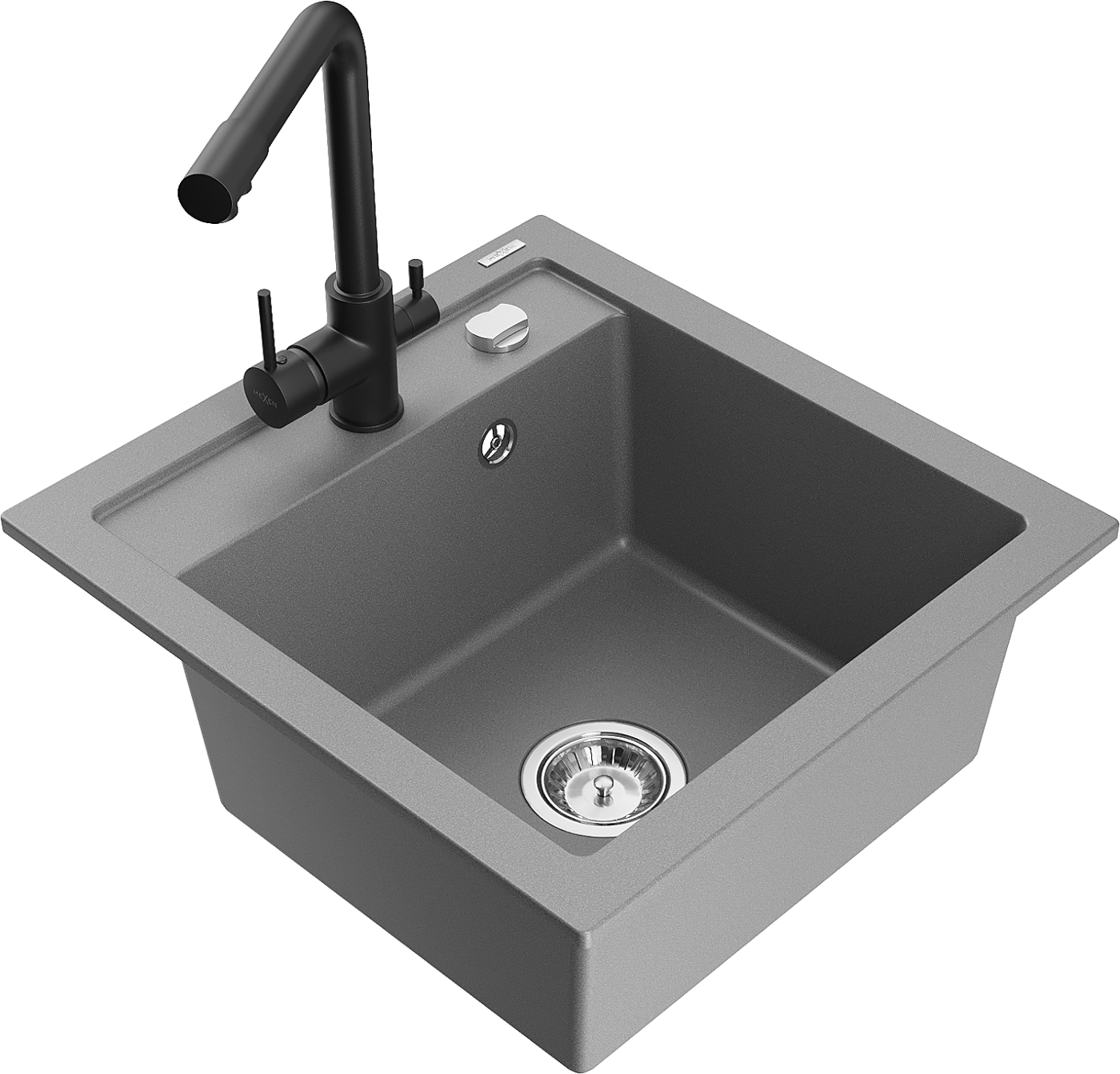 Mexen Vito granitais izlietne ar 1 nodalījumu un virtuves jaucējkrānu Duero, pelēka - 6503-71-671600-70