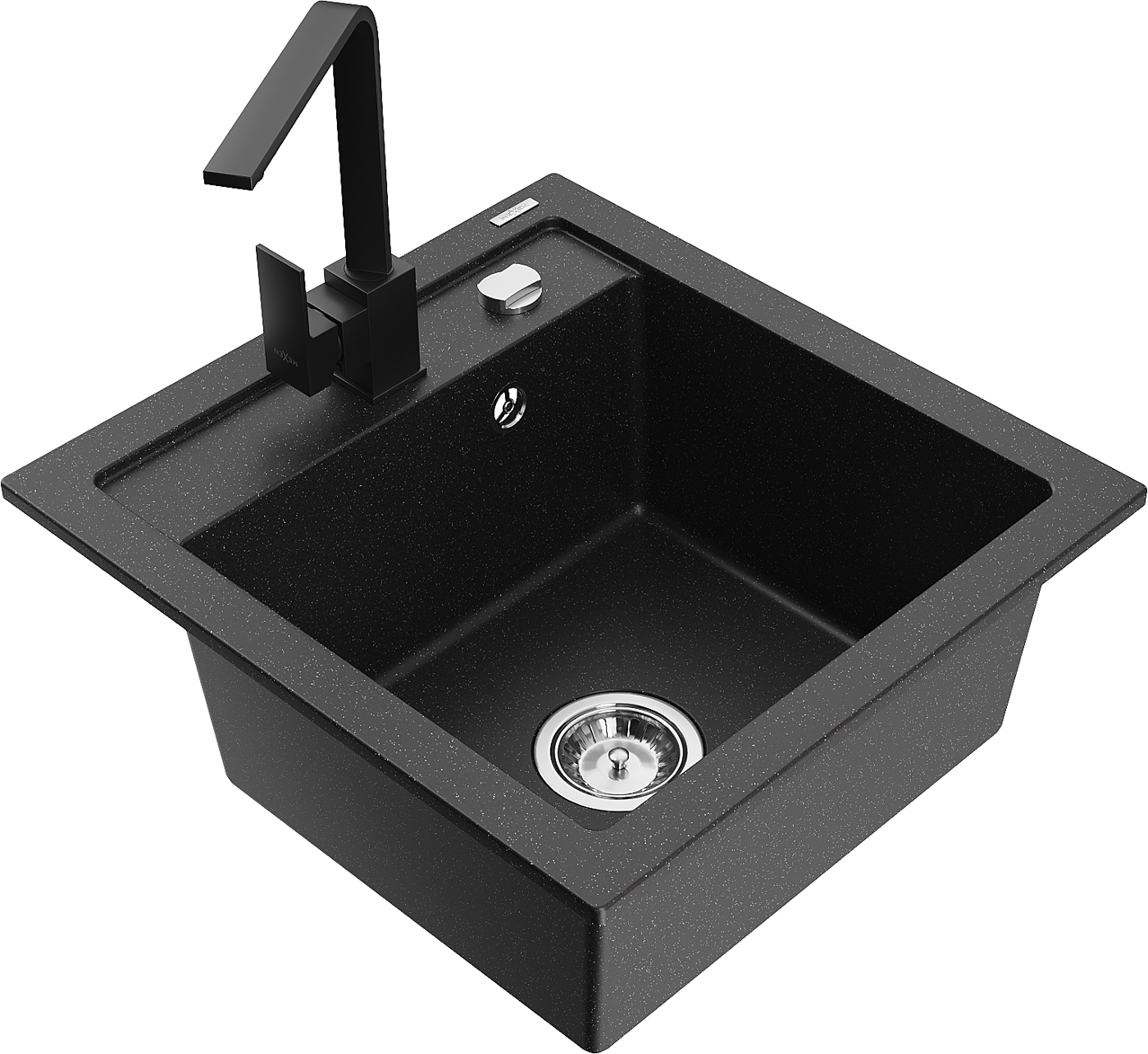 Mexen Vito granitā izlietne ar vienu nodalījumu un virtuves krānu Rita, melna/sudraba metāliks - 6503-73-670300-70