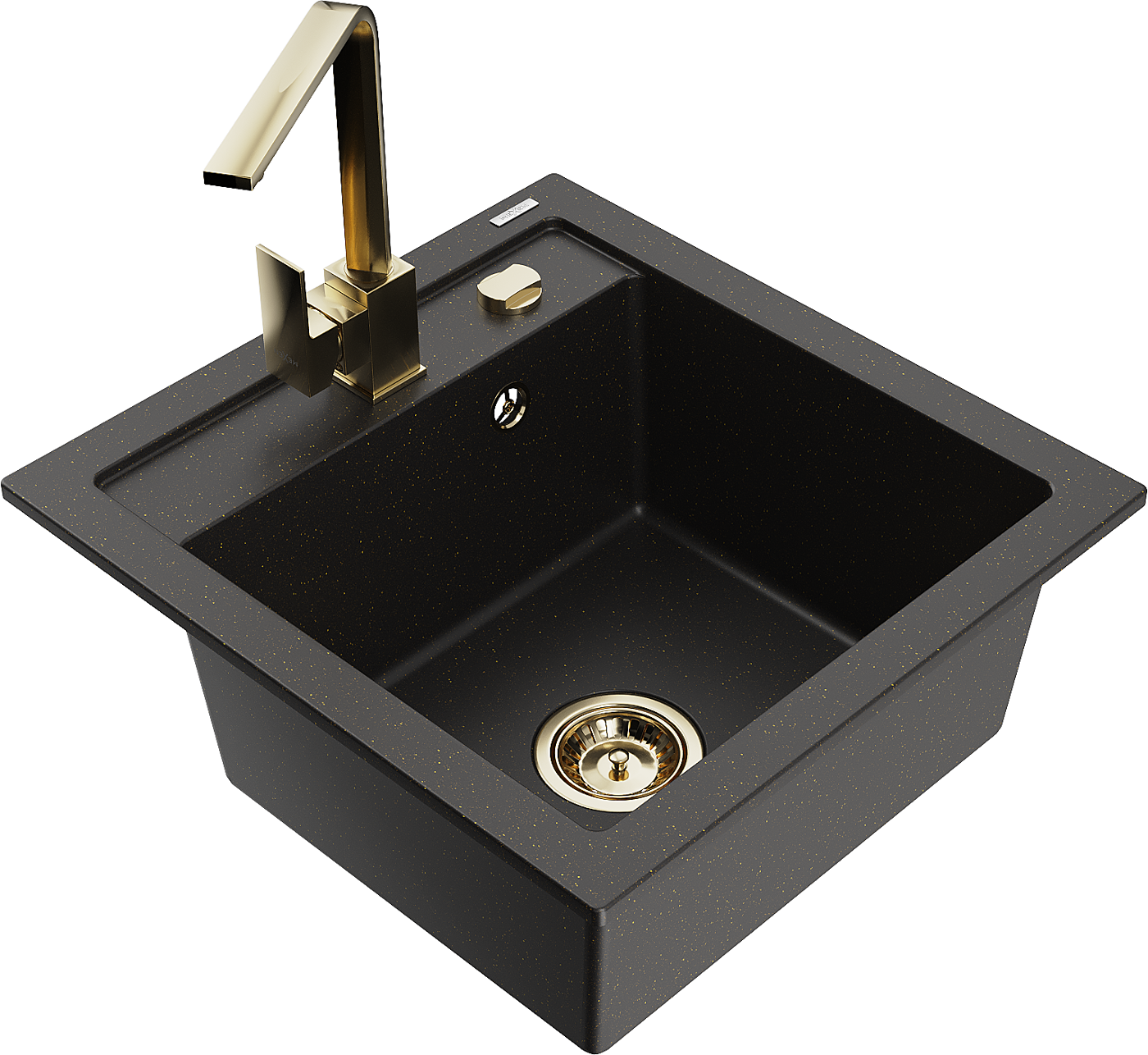 Mexen Vito granitizlietnes ar vienu nodalījumu un virtuves krānu Rita, melna/zeltaina metālika - 6503-75-670300-50