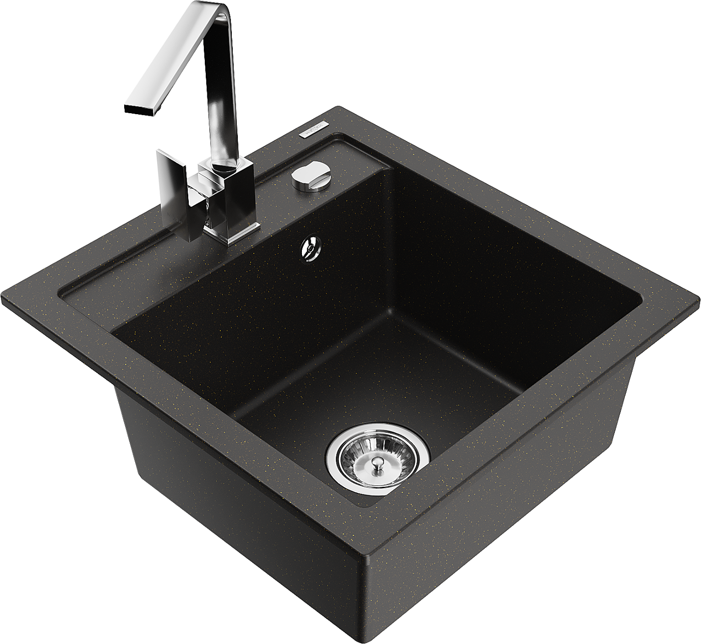 Mexen Vito granitē izlietne ar vienu nodalījumu un virtuves krānu Rita, melna/zeltītais metāliks - 6503-75-670300-00