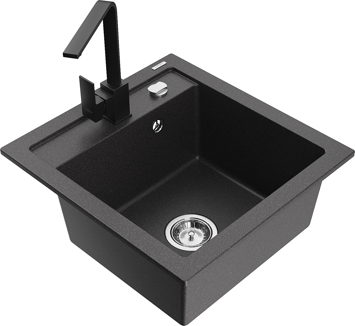 Mexen Vito granitā izlietne ar vienu nodalījumu un virtuves jaucējkrānu Rita, melns ar plankumiem - 6503-76-670300-70