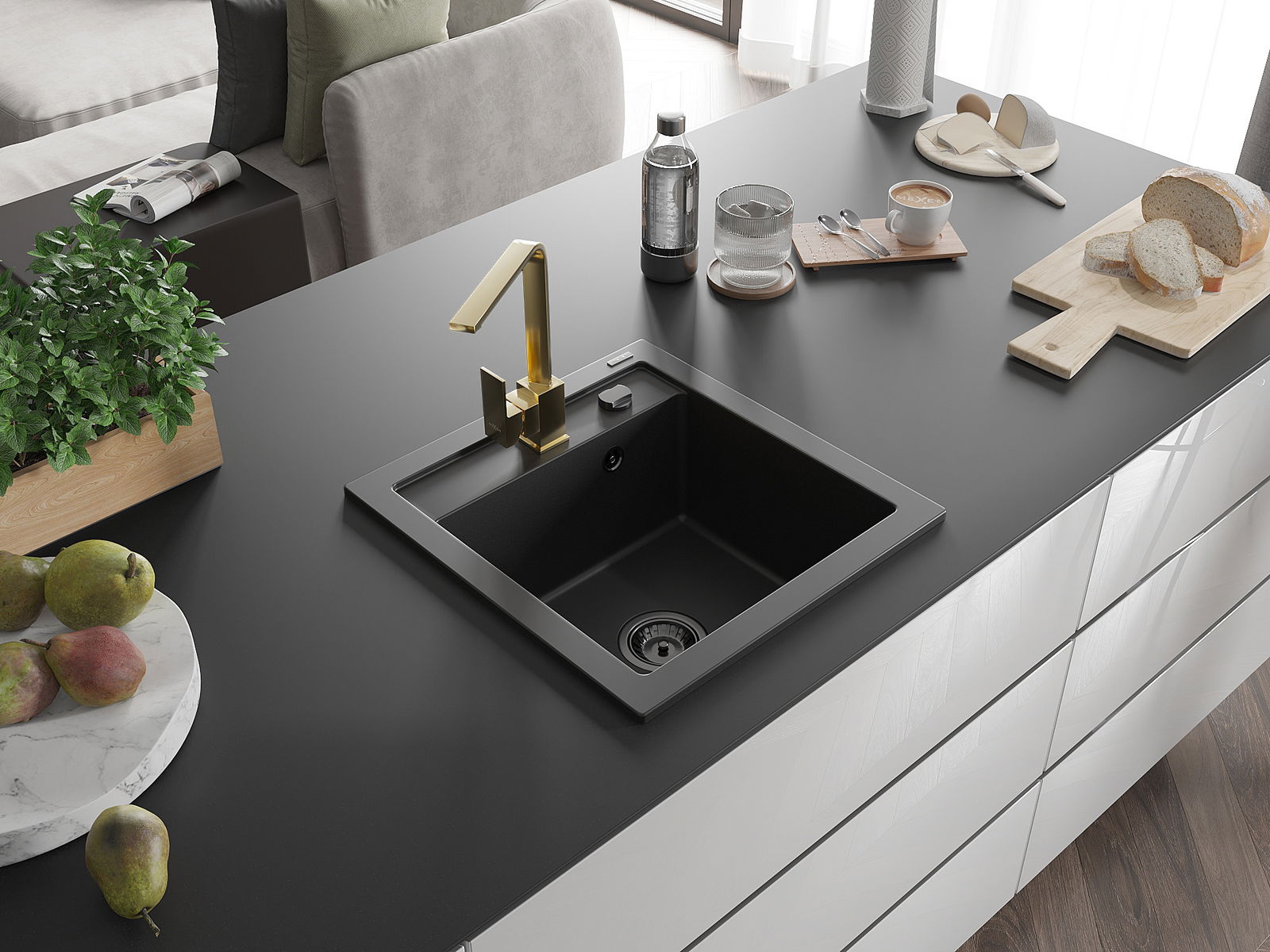 Mexen Vito granitīgs viena nodalījuma izlietne ar virtuves jaucējkrānu Rita, melna - 6503-77-670300-50-B