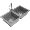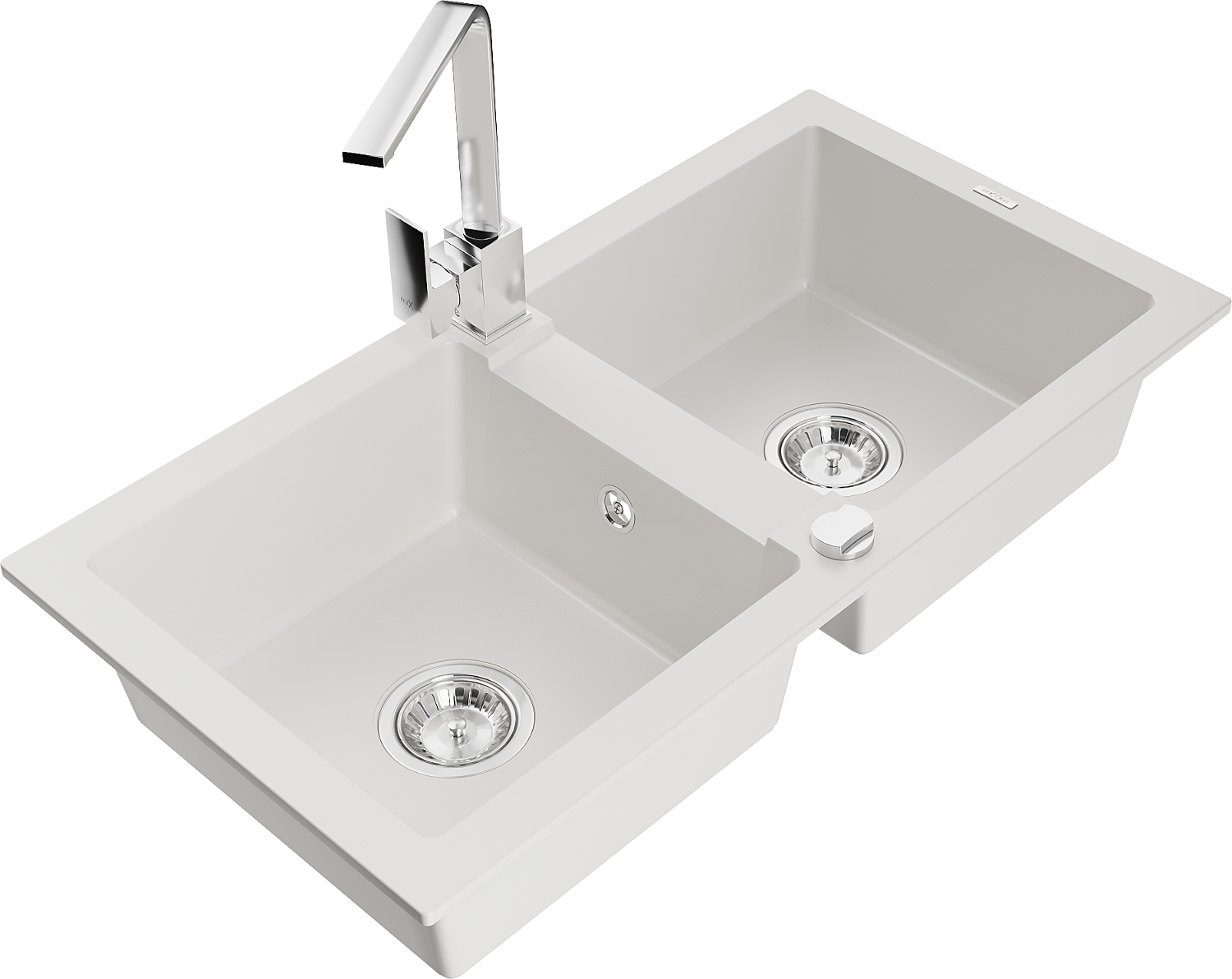 Mexen Mario granitizlietne ar divām kamerām un virtuves krānu Rita, balta - 6504-20-670300-00