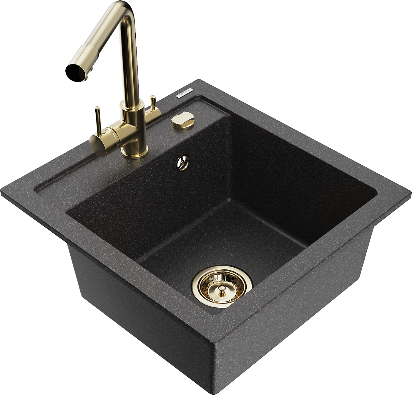 Mexen Vito granīta virtuves izlietne ar 1 nodalījumu un virtuves jaucējkrānu Duero, melns ar plankumiem - 6503-76-671600-50