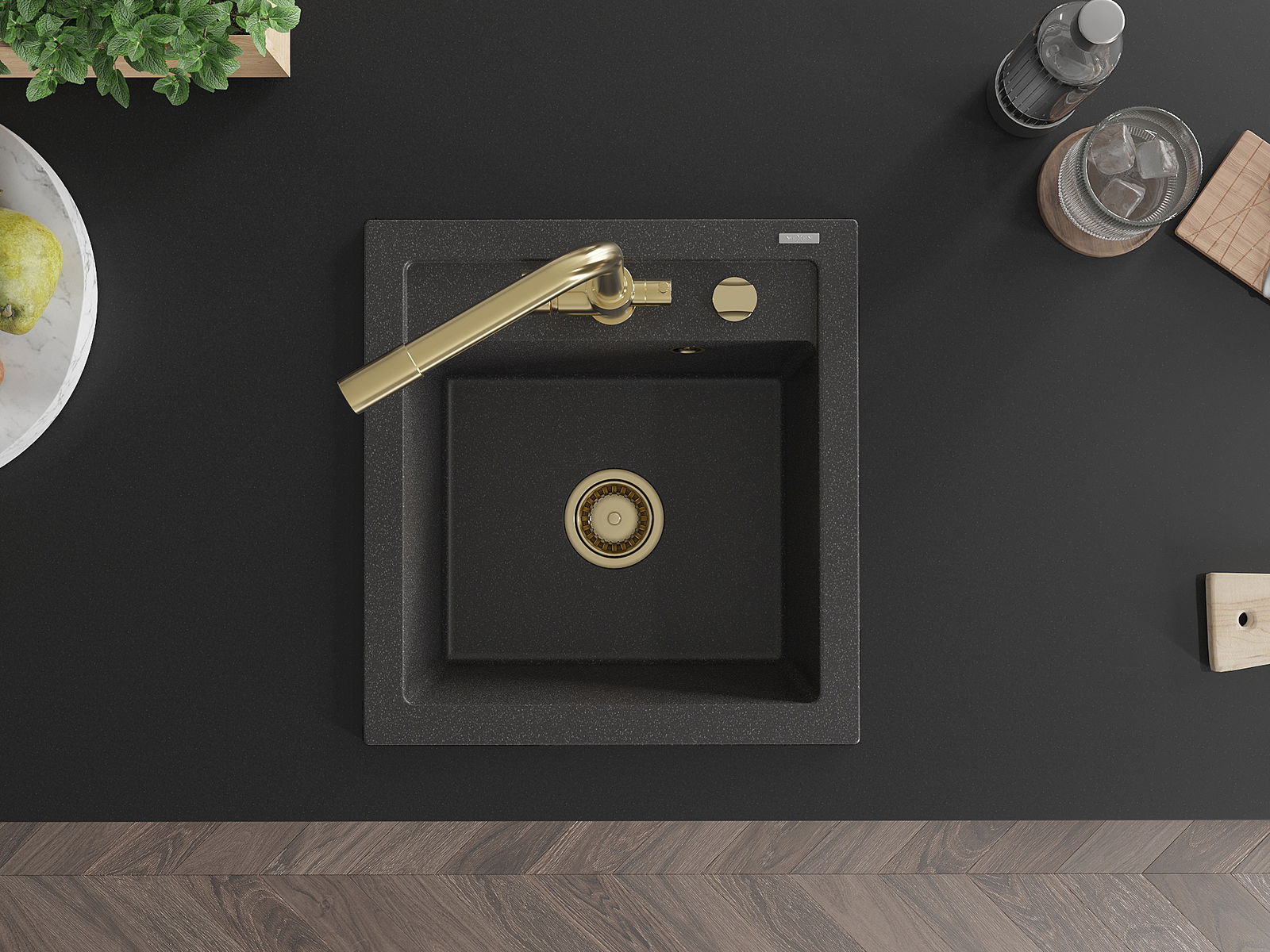 Izlietnei ir padziļināts caurums ar diametru 35 mm, kuru varat izsist patstāvīgi. To var izmantot, piemēram, šķidruma dozatora uzstādīšanai, kas novērsīs plastmasas pudeļu klātbūtni virtuvē un piešķirs tai elegantu apdari.