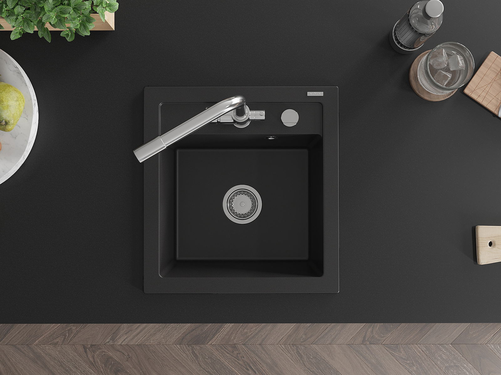 Mexen Vito granīta izlietne ar vienu nodalījumu un virtuves krānu Duero, melna - 6503-77-671600-00