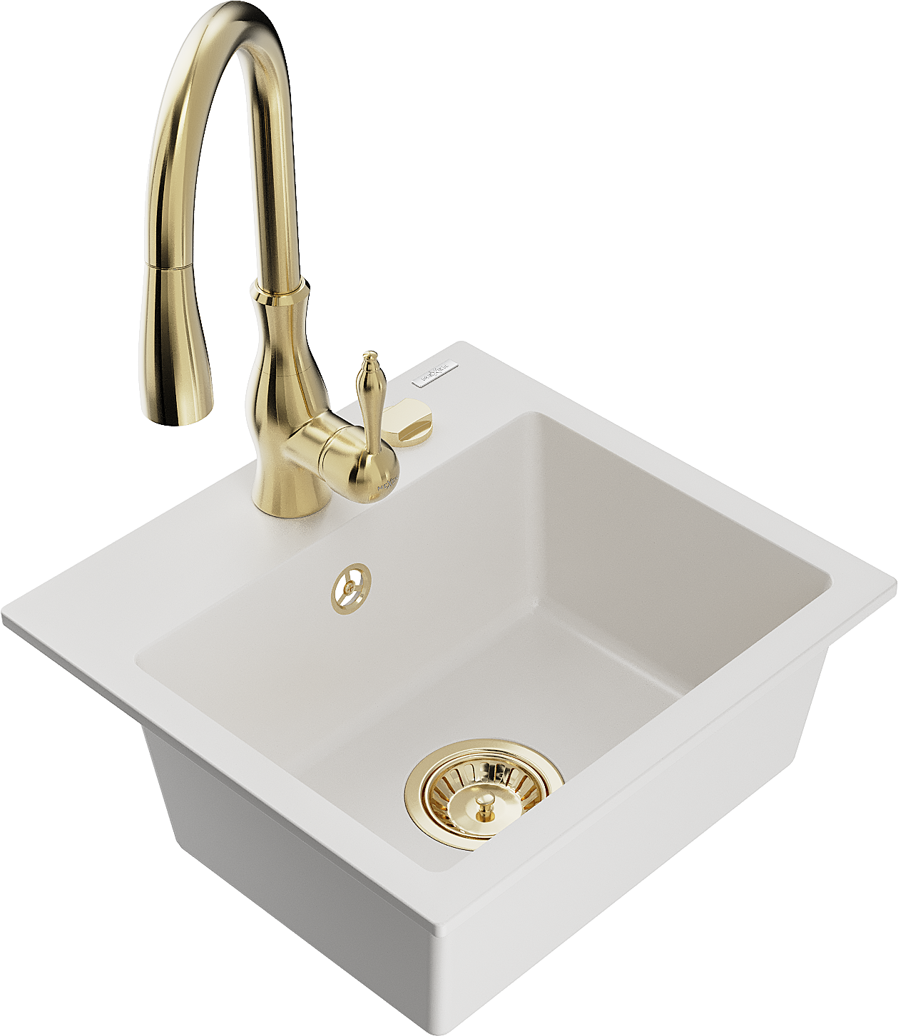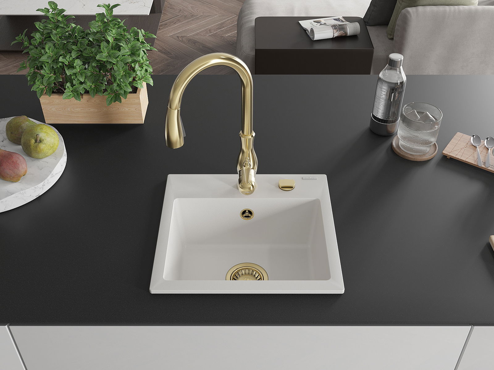 Mexen Milo granit izlietne ar 1 nodalījumu un virtuves jaucējkrānu Savita, balta - 6505-20-672601-50