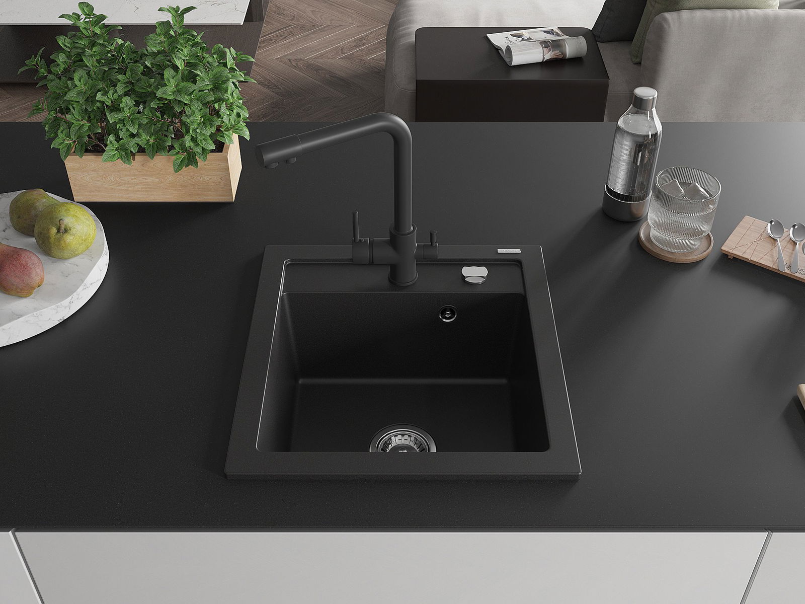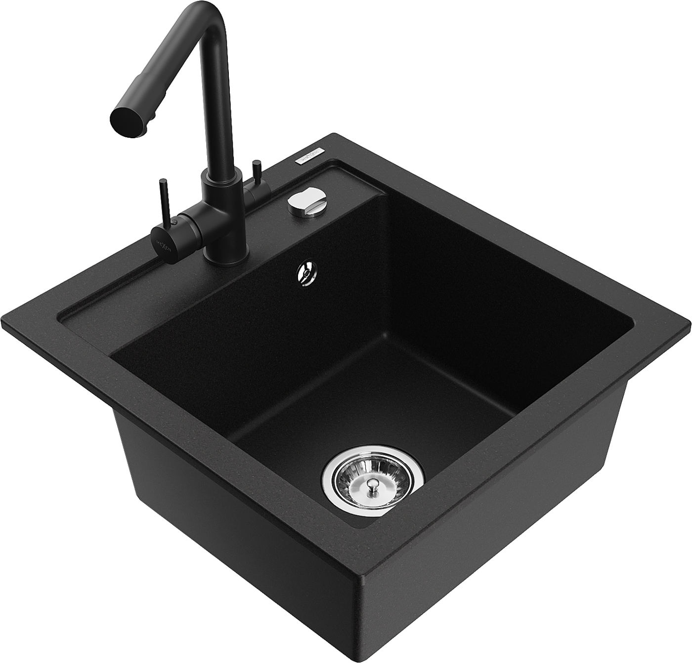 Mexen Vito granit izlietne ar 1 nodalījumu un virtuves jaucējkrānu Duero, melns - 6503-77-671600-70